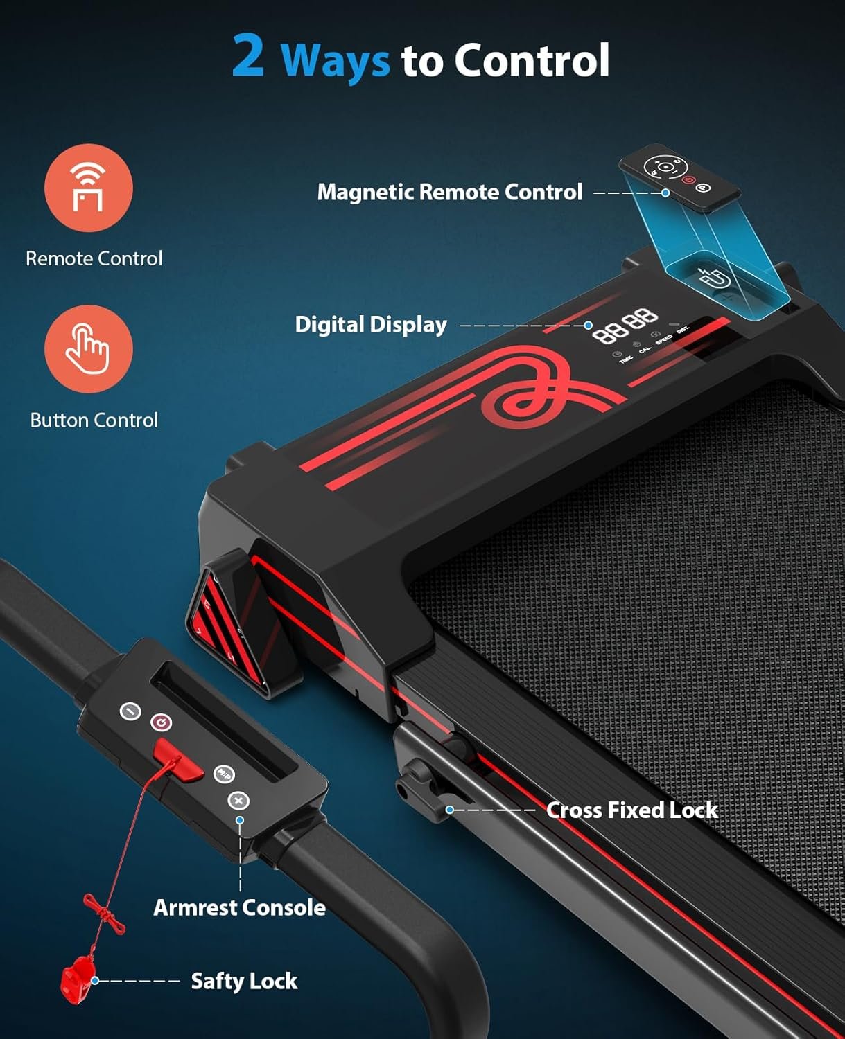 【LED Display & Remote】The small treadmill comes with a clear LED display. It enables you to track speed, time, calories, and distance in real time. No need to manually switch displays during your workout. You can easily adjust the speed and control functions using the remote or the panel on the handle. We’ve also preset 12 programs for you to have more fun on the treadmill.