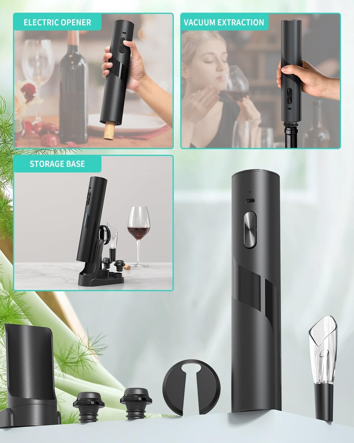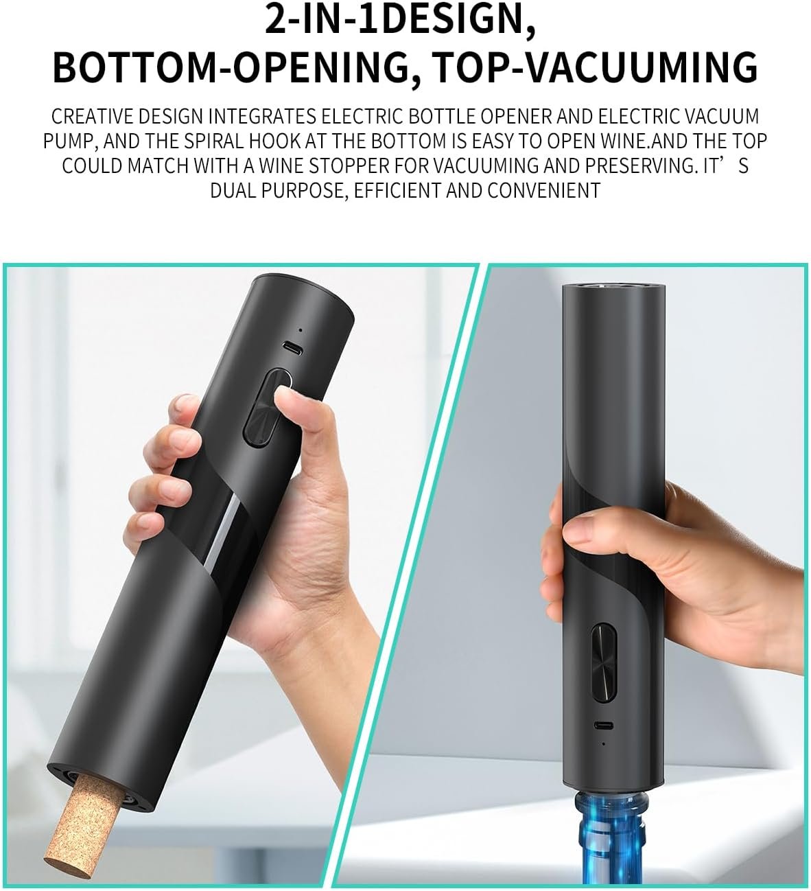 ✔️CREATIVE DESIGN – Effortlessly uncork bottles with a single touch, and utilize the other end to swiftly evacuate air from wine bottles, preserving the desired vacuum for keeping superior taste