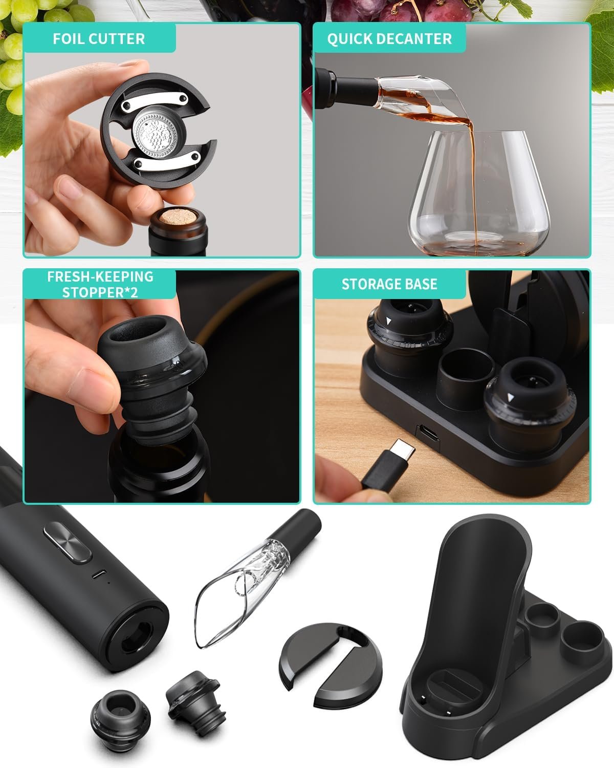 ✔️IDEAL PRESENT FOR VINOPHILES – This exceptional electric wine bottle opener bundle, complete with all the wine essentials, offers an unparalleled wine-tasting adventure. It’s a gift that no wine enthusiast could resist