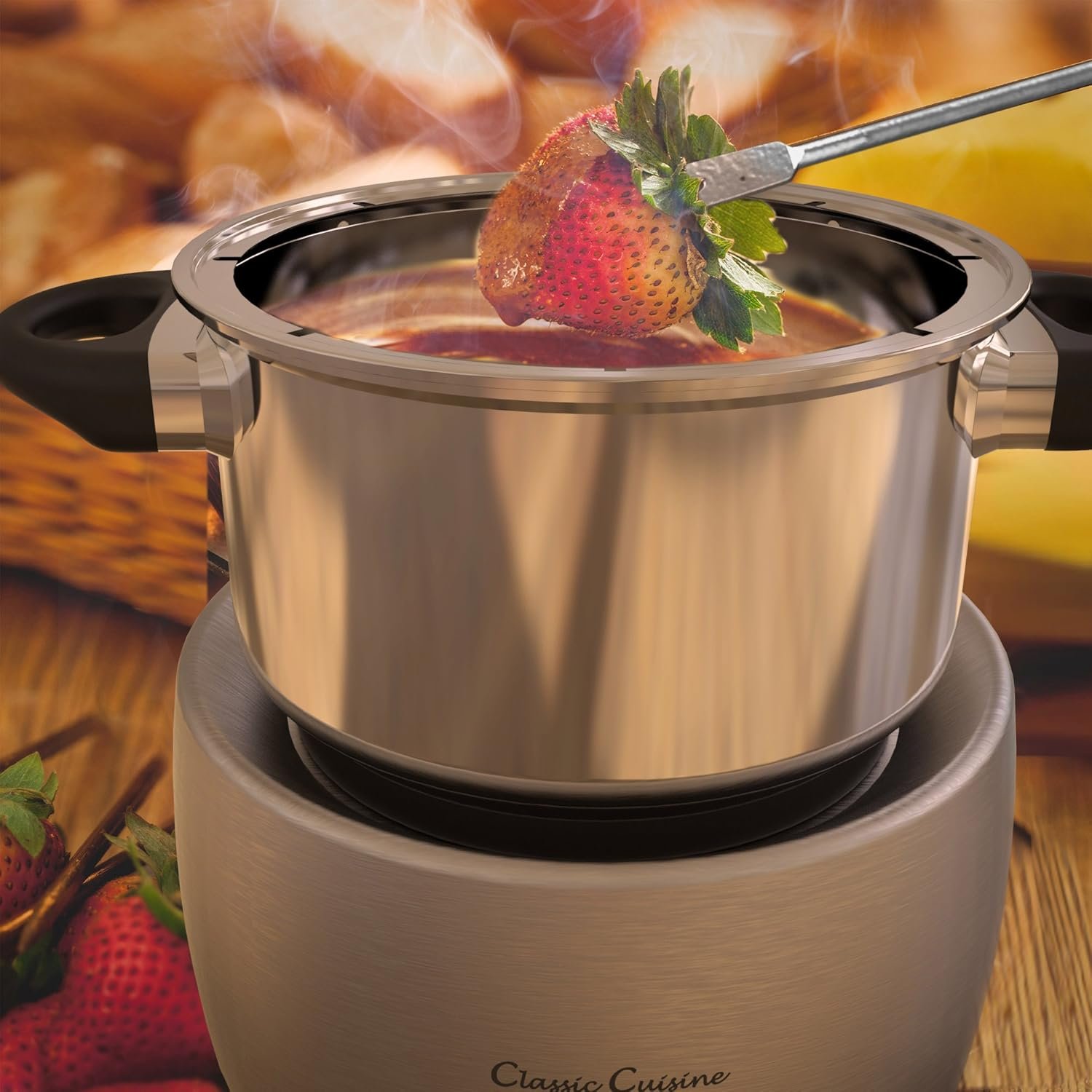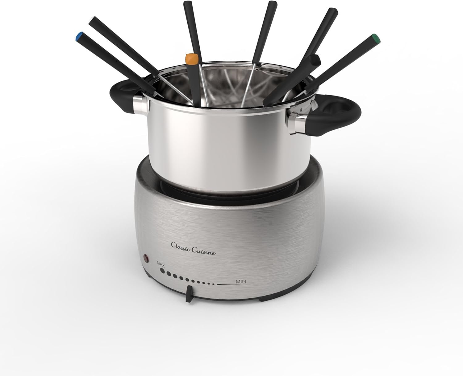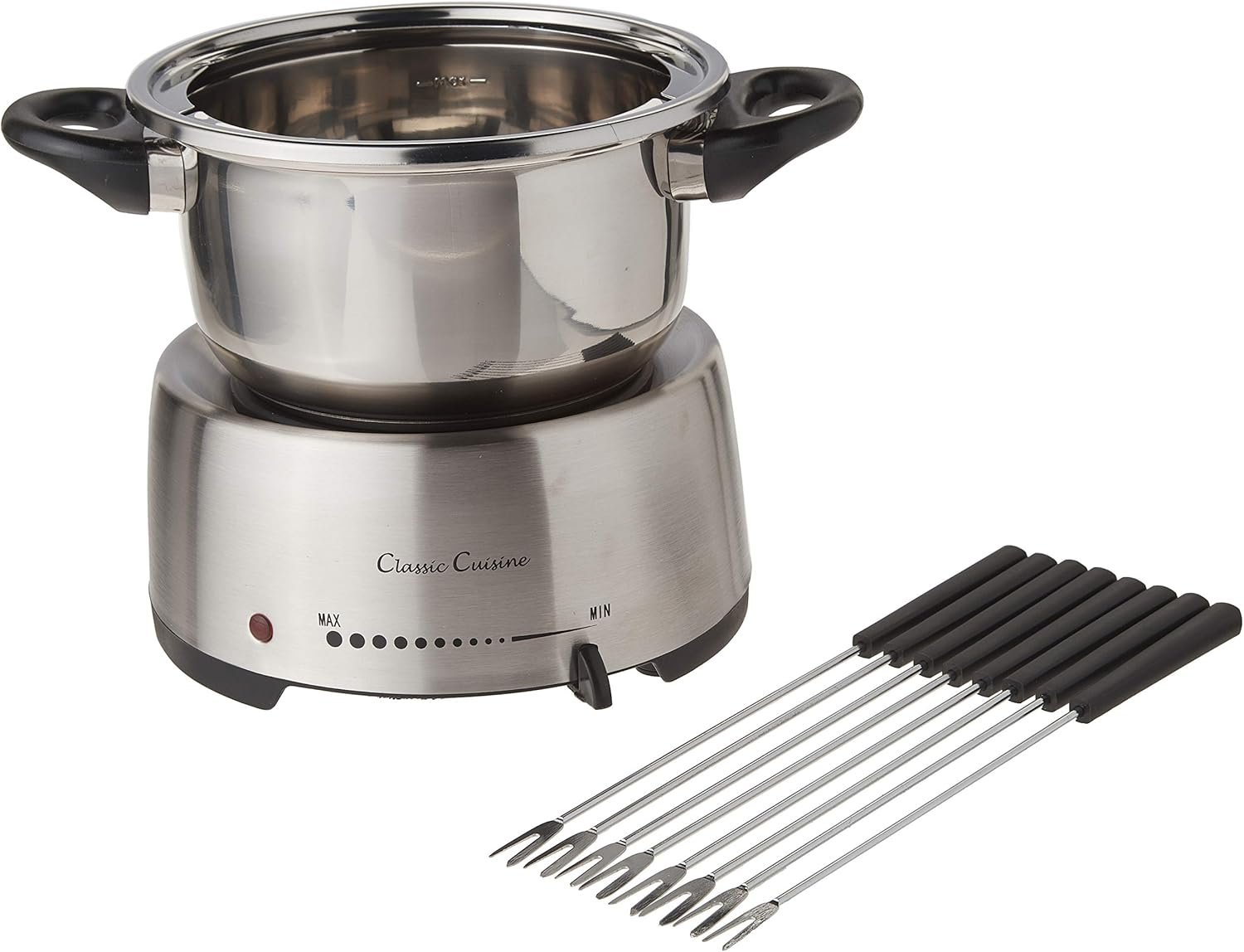 Host a unique dining experience for friends and family in the comfort of your own home or backyard with the Electric Fondue Pot Set by Classic Cuisine. This chocolate and cheese fondue kit comes with eight forks that feature stay-cool handles for safety and color-coding so each diner can identify their own stick. With adjustable heat settings and a dishwasher-safe stainless-steel melting pot, this electric fondue maker offers safety, reliability, and convenience whether you’re hosting a cheese, meat, or chocolate fondue party. IMPORTANT: Classic Cuisine is committed to providing the consumer with the absolute best price and value on our entire line of products. NOTE: This is an exclusive product of Classic Cuisine and ONLY Fondue Pot Electric Set by Classic Cuisine are GUARANTEED to be genuine. Avoid buying counterfeit products and transacting with unauthorized sellers.