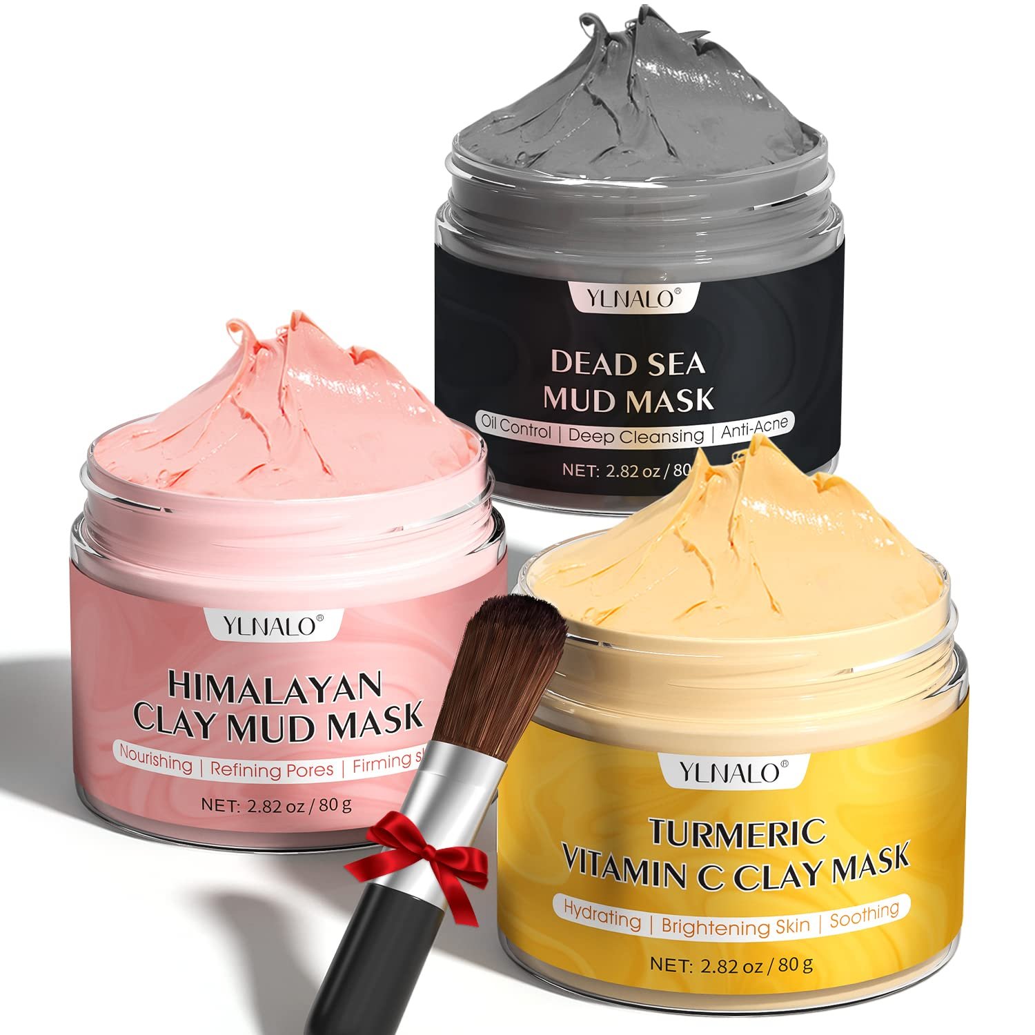 Ylnalo Mask Set Turmeric Vitamin c Clay Mask, Dead Sea Mud Mask, Himalayan Clay Mask Deep Cleansing, Reduce Acne Dark Spots, Radiant Skin, Oil Control