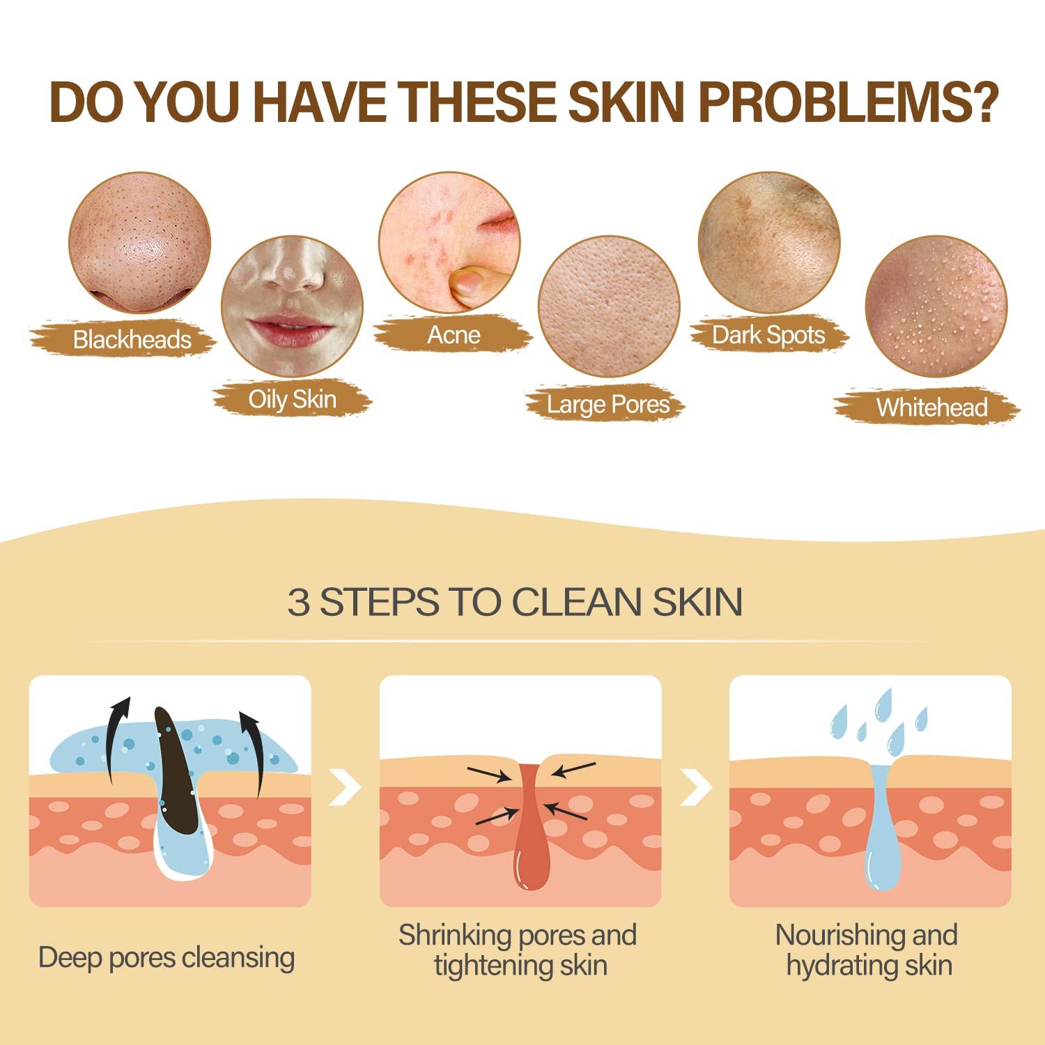 Remove the excess oil, blackheads, and dirt.Restores bounce, refines texture, moisturizing and nourishing.Helps skin optimize its natural renewal and cellular potential.Visibly improves dark spots, acne marks, minimizes pores and makes the skin fine and smooth.Minimizes dullness and discoloration. Help release a fresh, renewed clarity, healthy-looking glow.