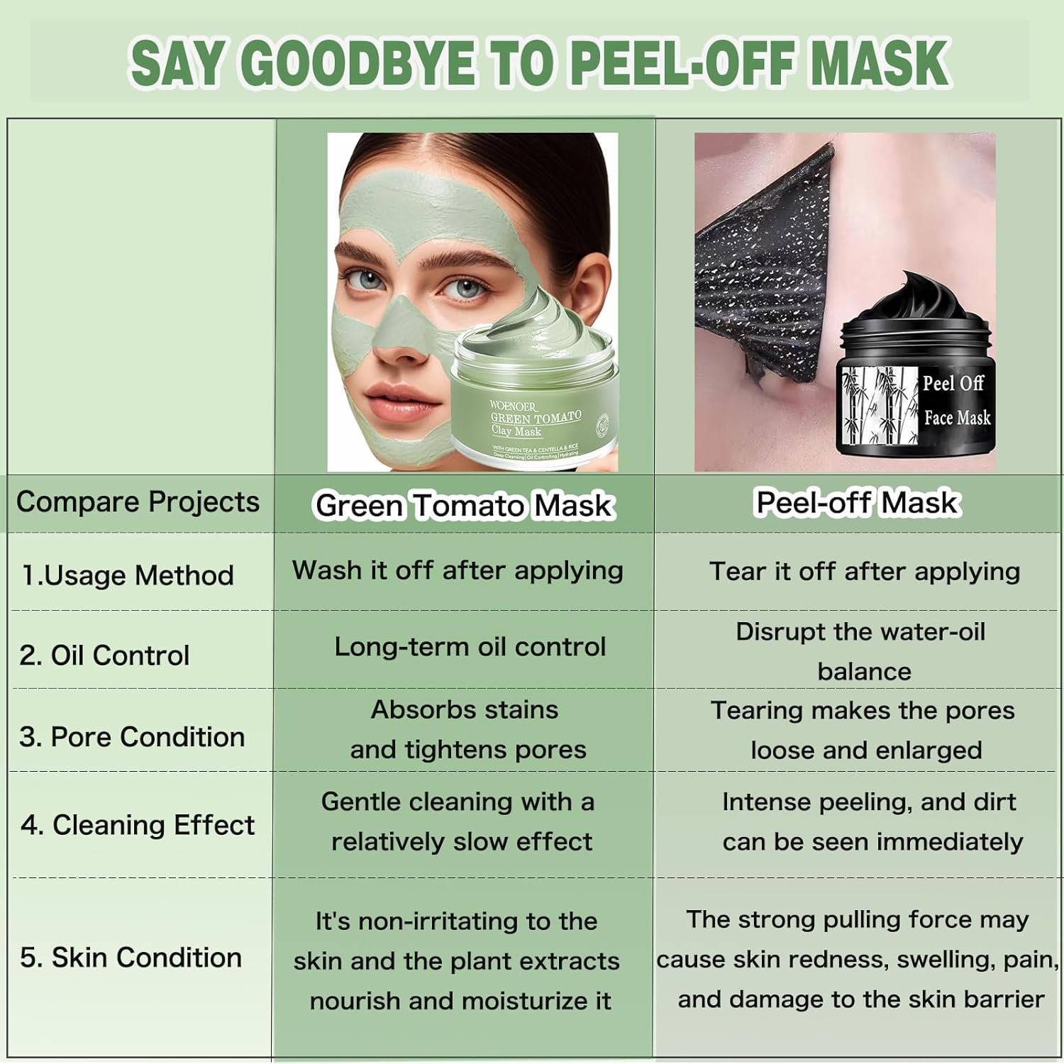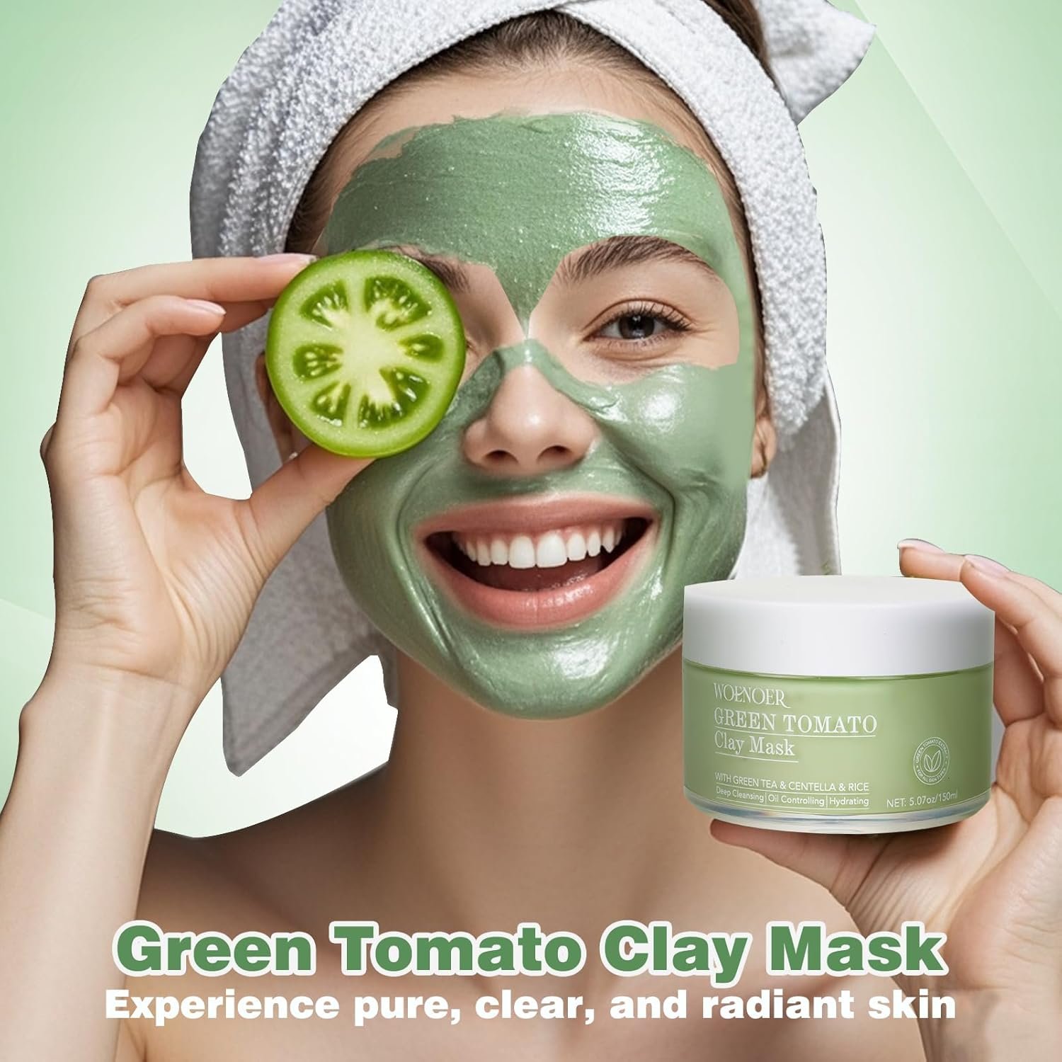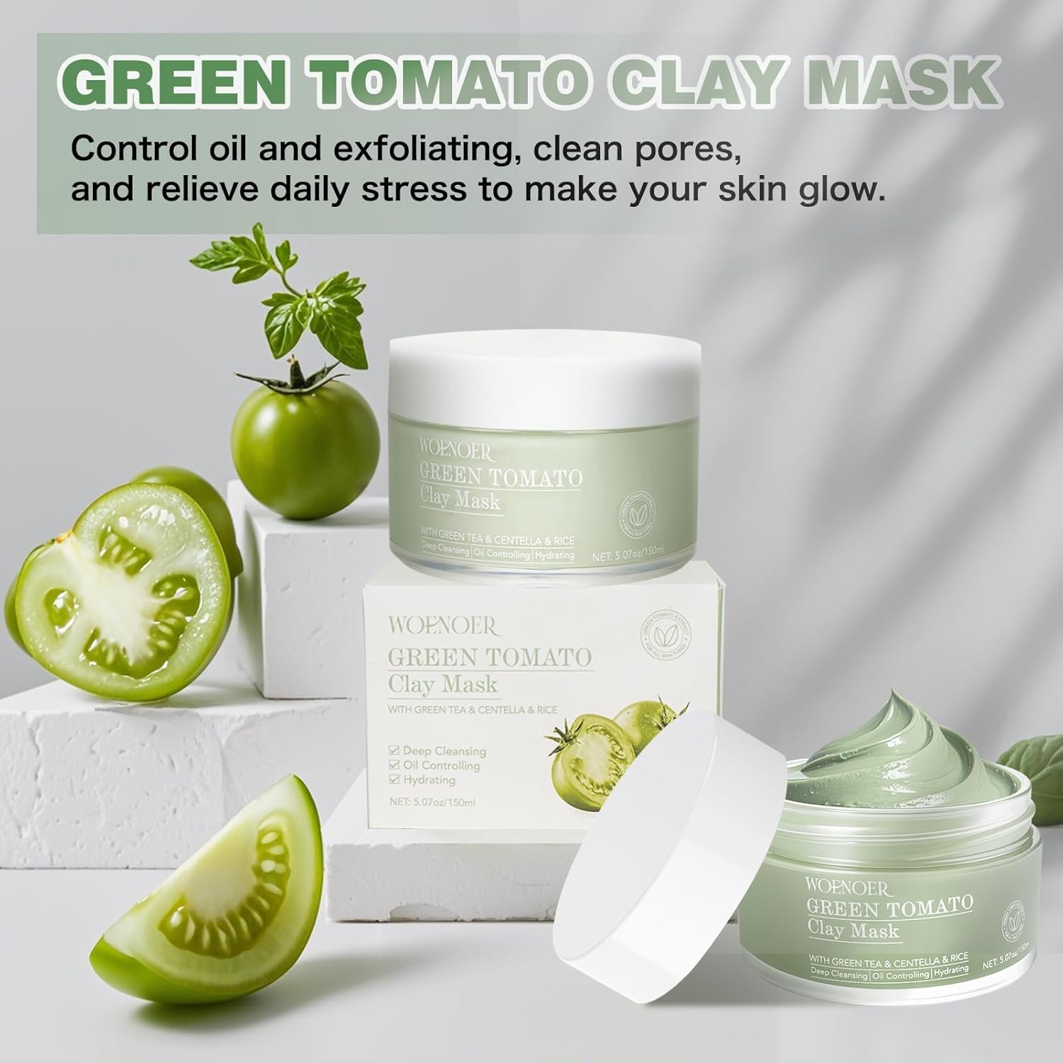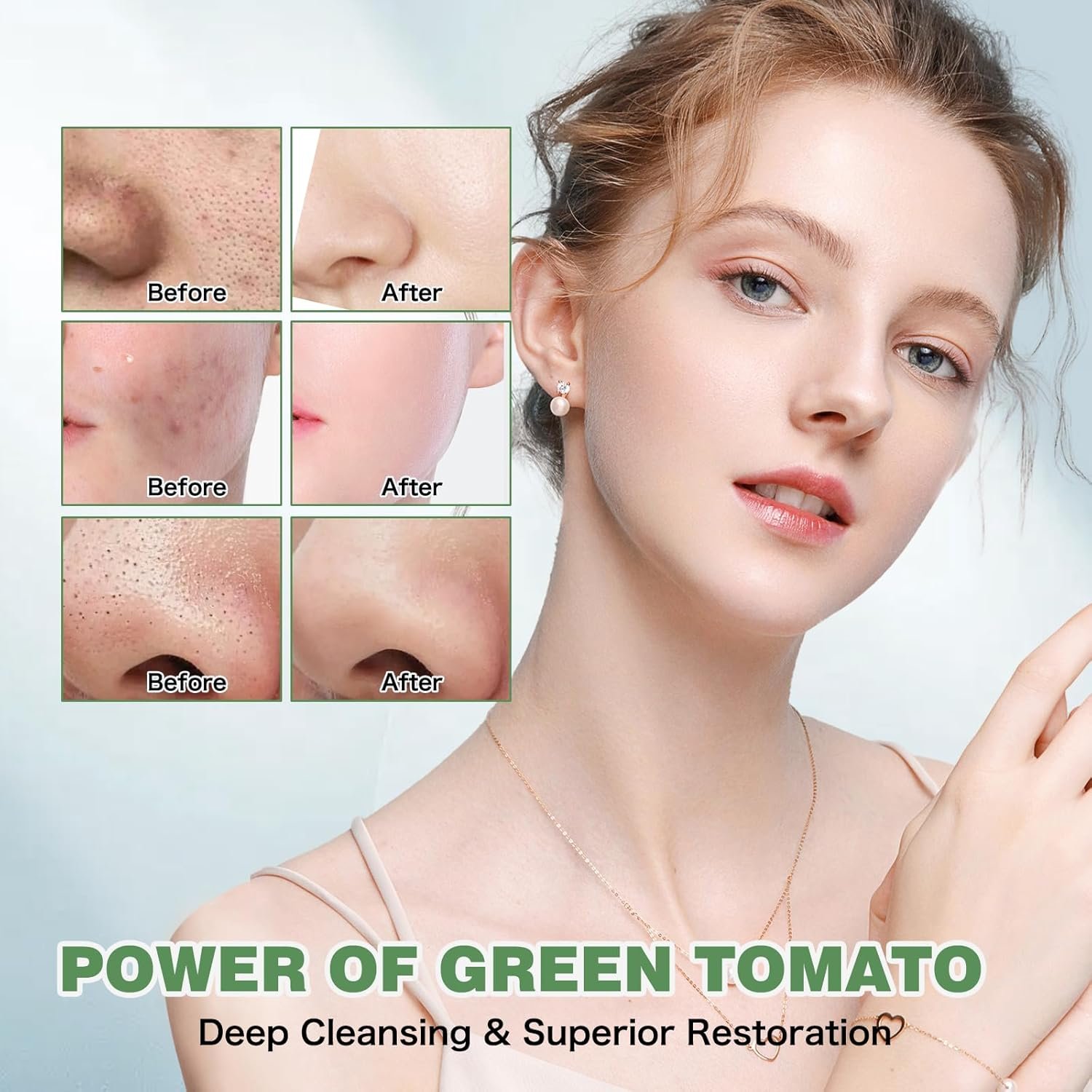 Deep Cleansing: Green tomato mask penetrates deep into pores to remove impurities, reduce blackheads white and acne, controls sebum and exfoliates, reduces excess oil, and leaves skin plump, soft and shiny