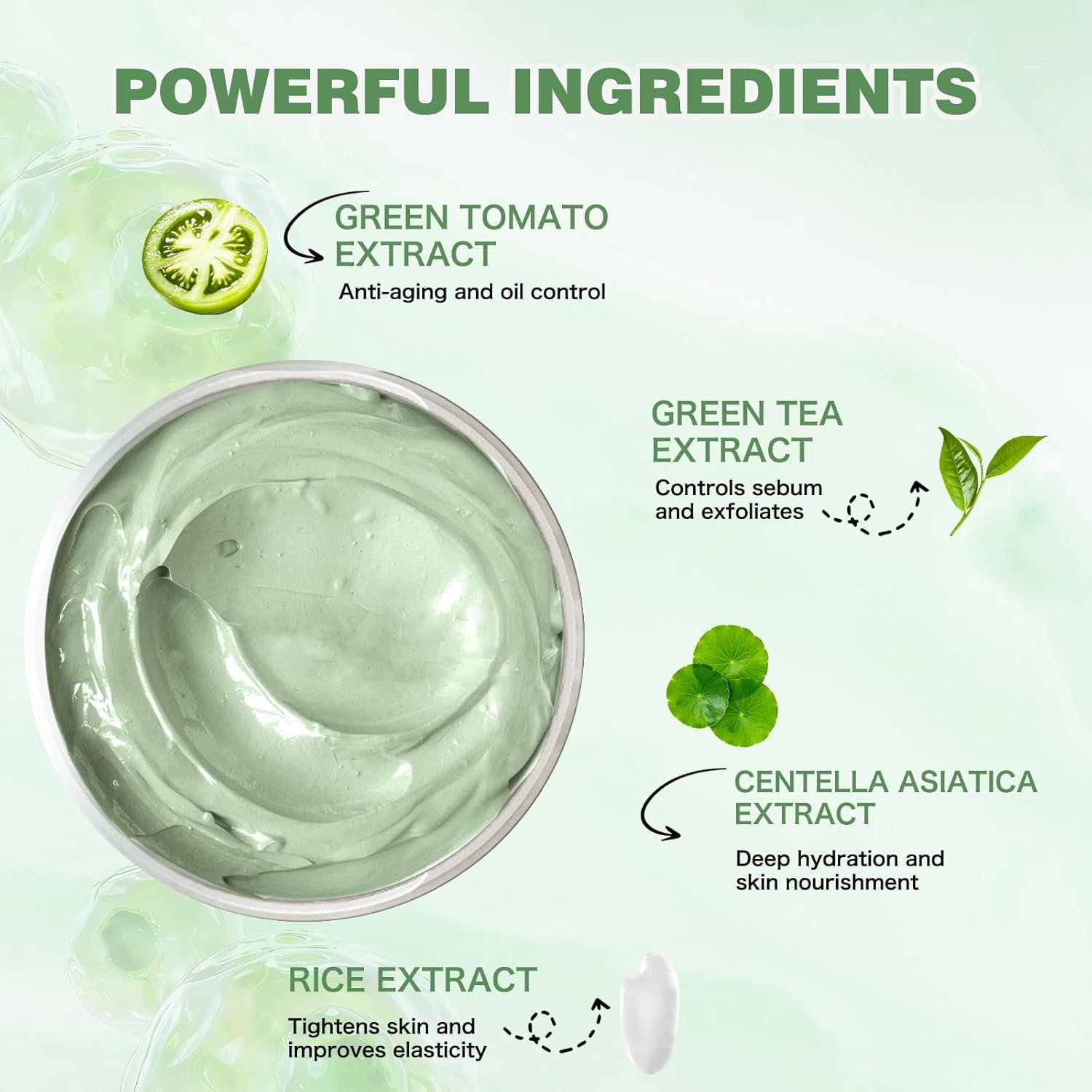 Hydrating & Moisturizing: The green tomato mask contains a large amount of plant extracts, which is gentle to the skin, effectively cleans the skin while regulating the water and oil balance of the skin, replenishing skin moisture and nourishing the skin