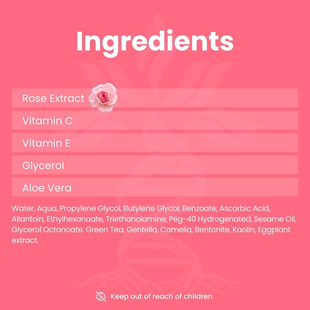 The mask helps to deeply cleanse the skin, remove dead skin cells, and unclog pores. It also contains rose oil and rose water, which are known for their hydrating and revitalizing properties.