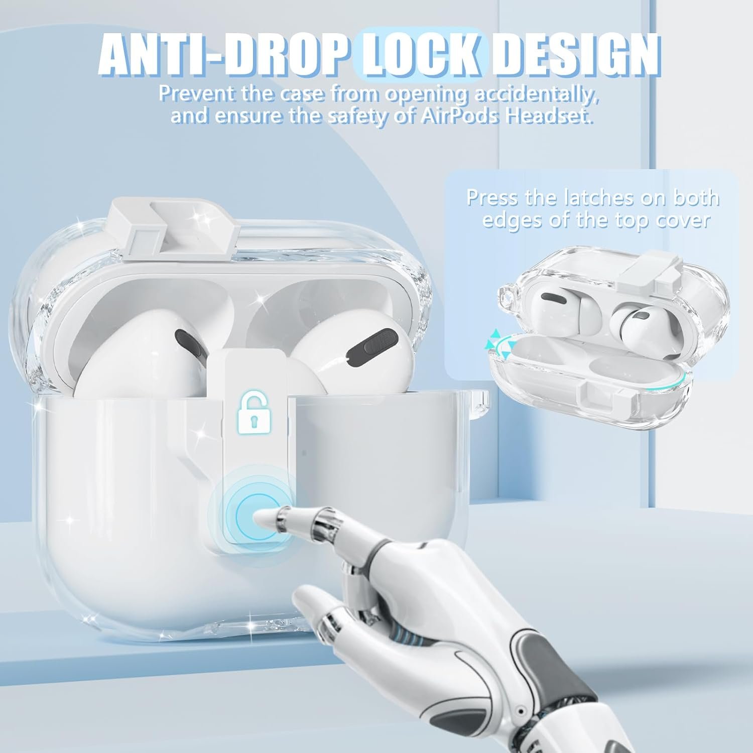 Secure Lock Clip: This airpods pro 2nd generation case adopts a split structure 2 pieces design and has safety lock clip on the front of case to avoid the accidental loss of the earphone when airpods case falls. It protects your precious airpods from dust, bumps, drops, and scratches