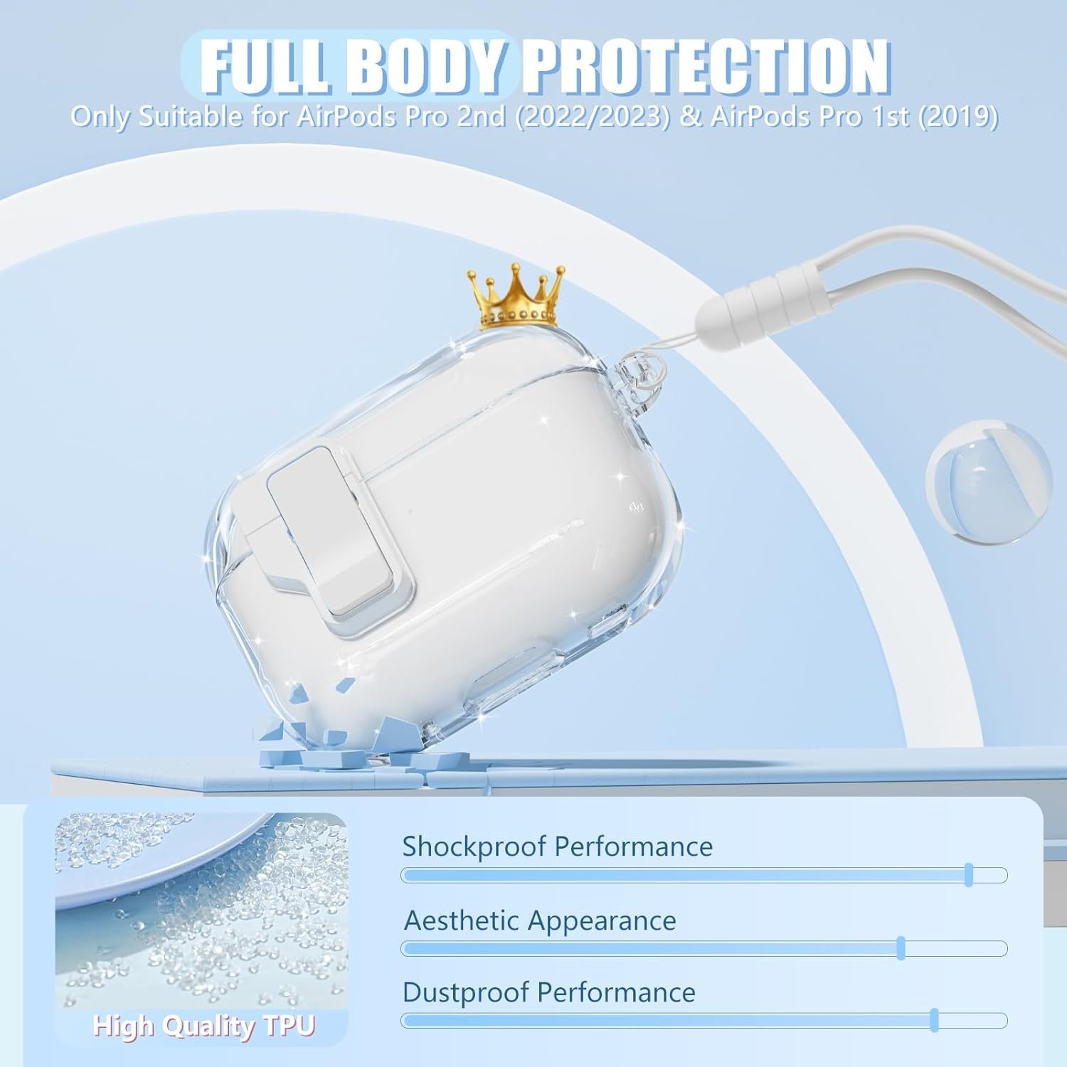 Package Include: 1 Pcs Clear Case with Secure Lock for AirPod Pro 2 case ,1 Pcs Silicone Portable Wrist Strap,1 Pcs Cleaning Pen (Notice: no included airpods 3rd generation charging case). If you have any problems after receiving the product or pleaset ell us immediately