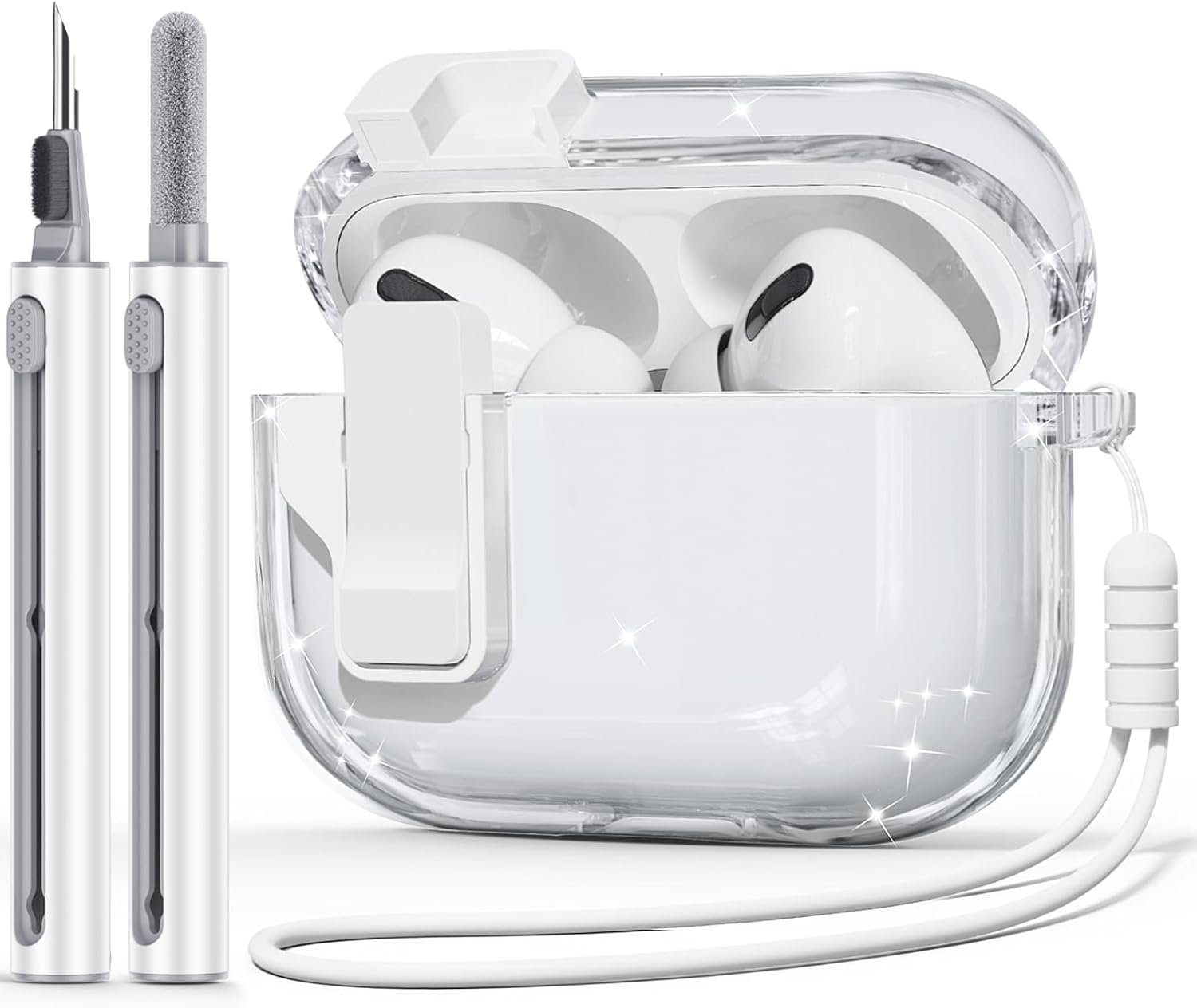 Clear Case for AirPods Pro 2nd Generation Case Cover with Cleaner Kit,【with Anti-Drop Lock】 Compatible for AirPod Gen 2 Charging Case (2023/2022) with Silicone Wrist Strap for Women – Clear White
