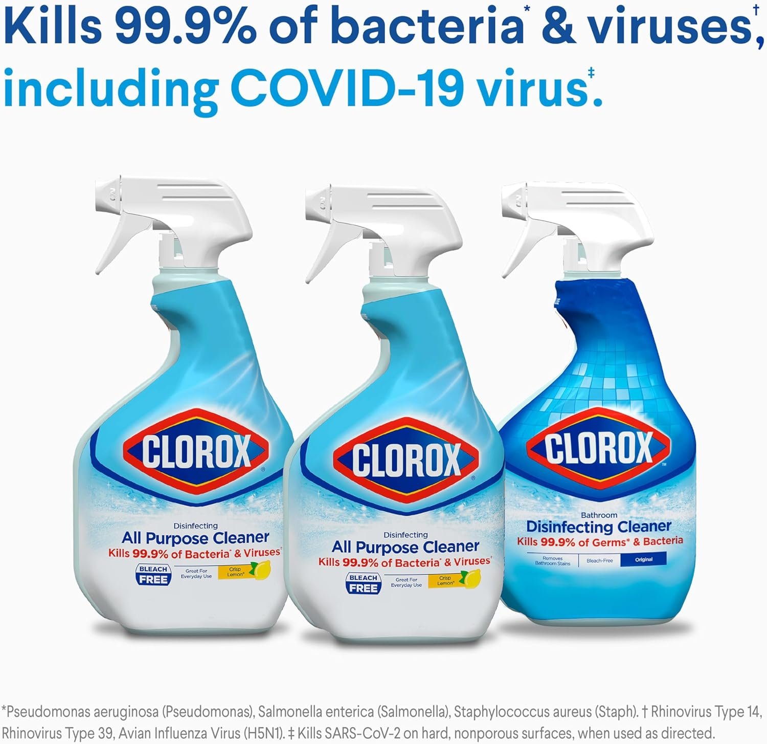 KILLS 99.9% OF BACTERIA AND VIRUSES: These Clorox disinfecting cleaners kill 99.9% of bacteria and viruses* and are proven to kill the COVID-19 virus*
