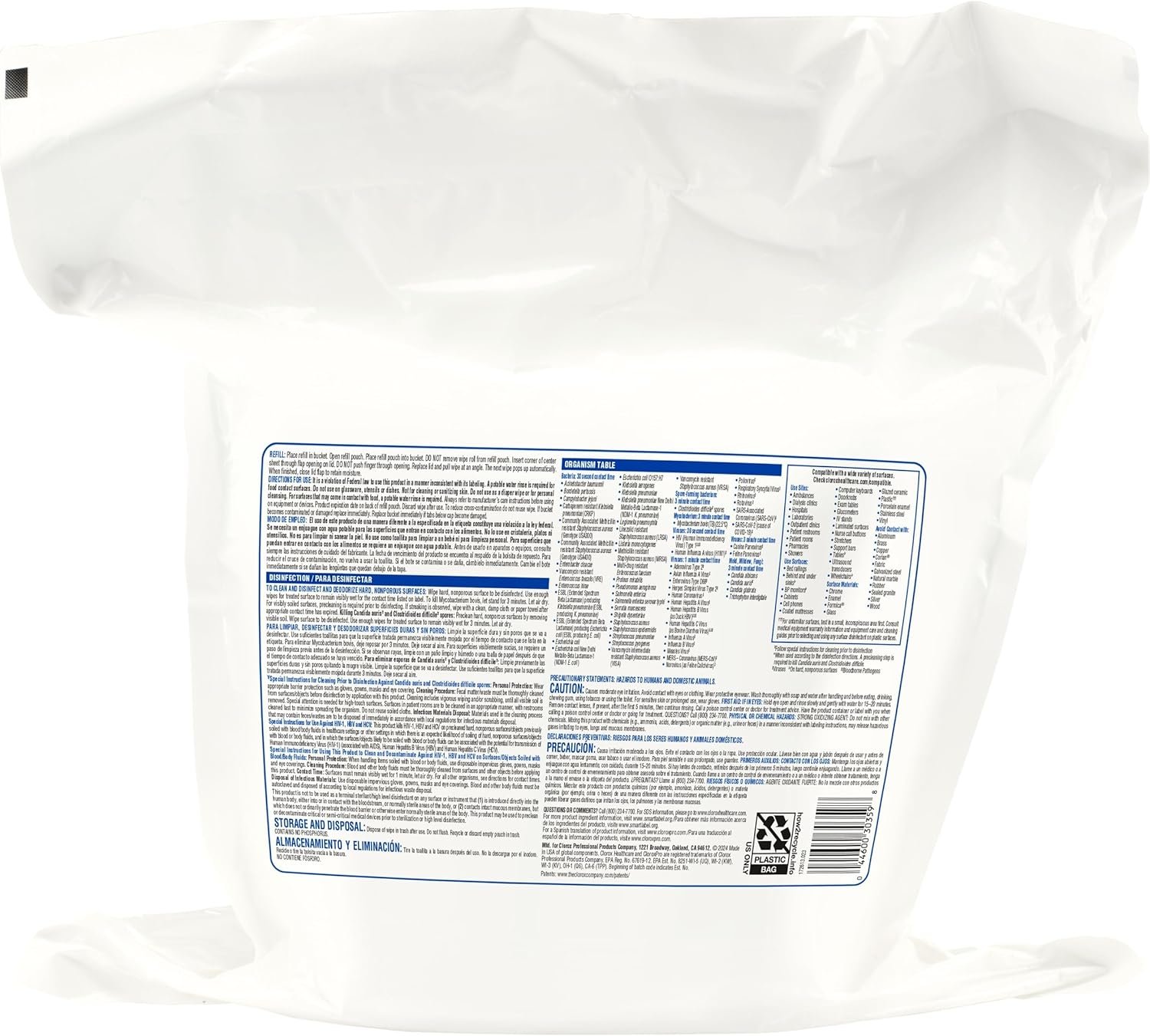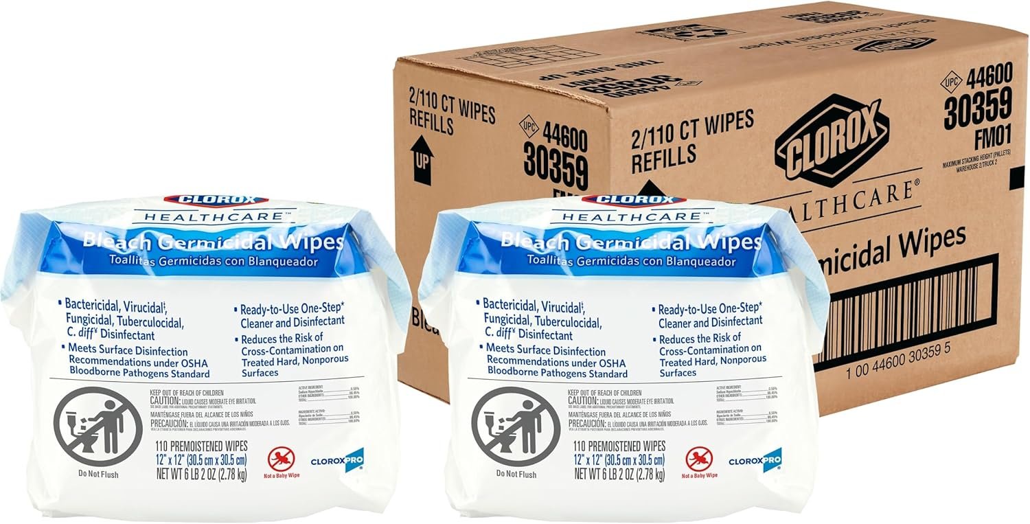 GERMICIDAL BLEACH WIPES: These one step** cleaner disinfectant wipes are EPA registered to kill C. difficile* and C. auris in 3 minutes and 58 other microorganisms in 1 minute or less;** Pack may vary