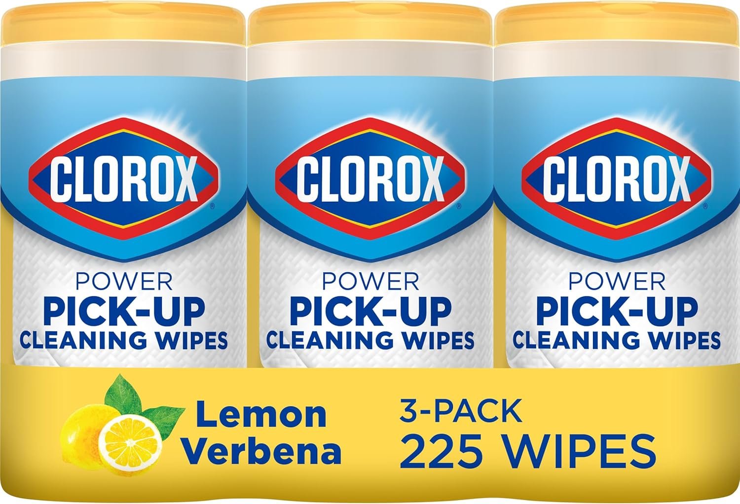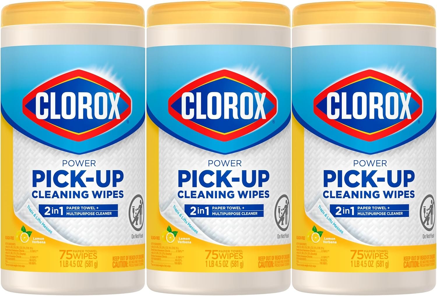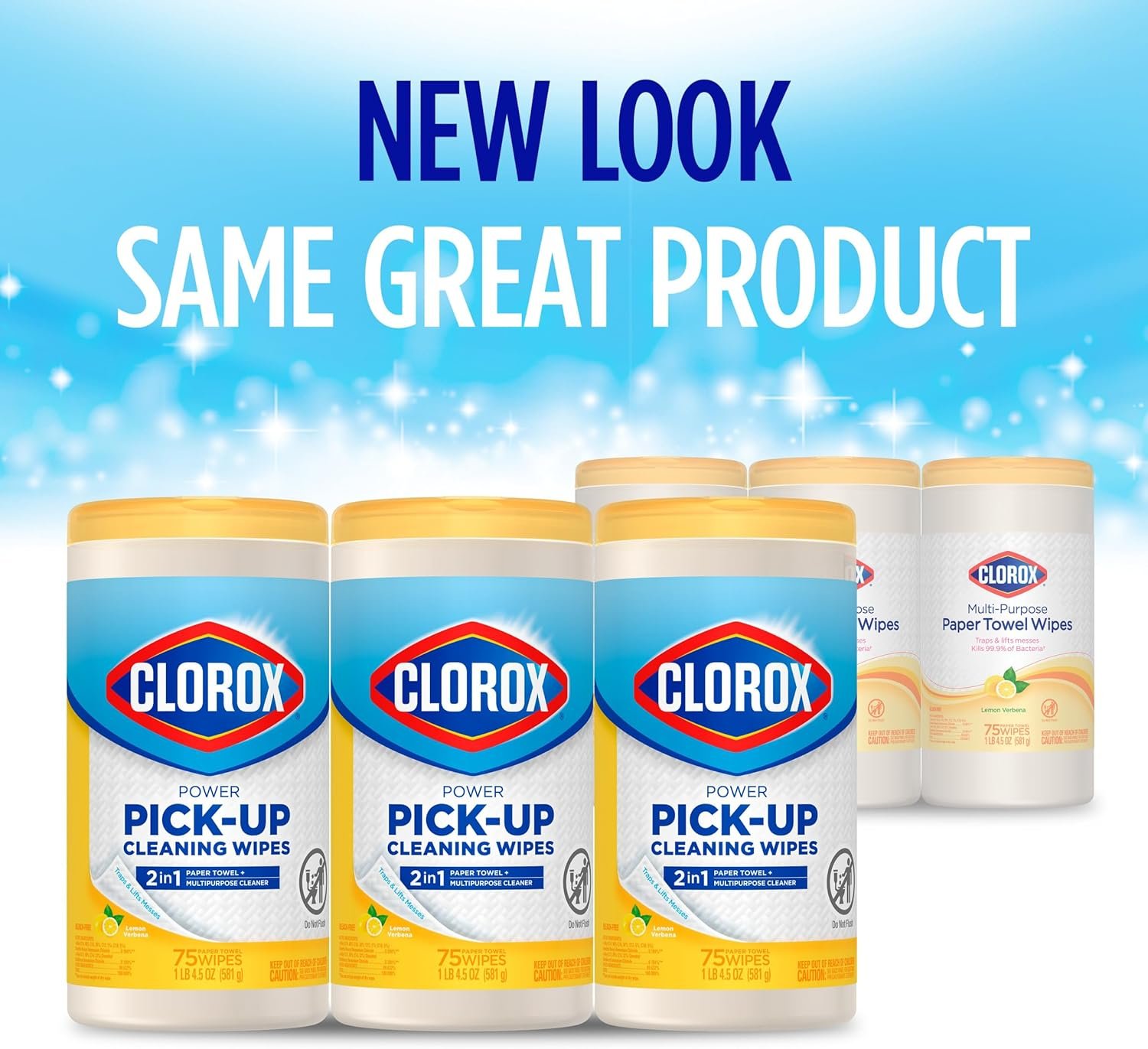 Clorox Power Pick-Up Cleaning Wipes, Lemon Verbena, 75 Paper Towel Wipes, Pack of 3 (Pack May Vary)