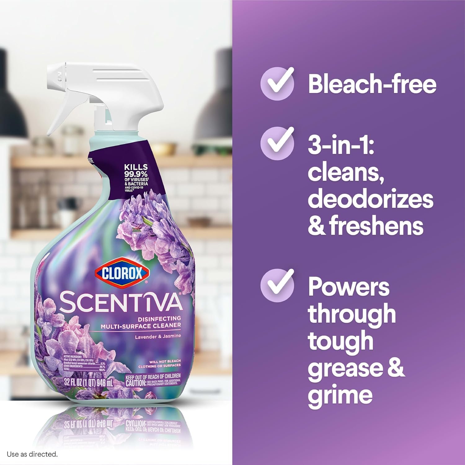 ALL PURPOSE CLEANER: Make your home sparkle with Clorox Scentiva Disinfecting Multi-Surface Cleaner that kills 99.9% of germs*, including COVID-19** Virus; pack may vary