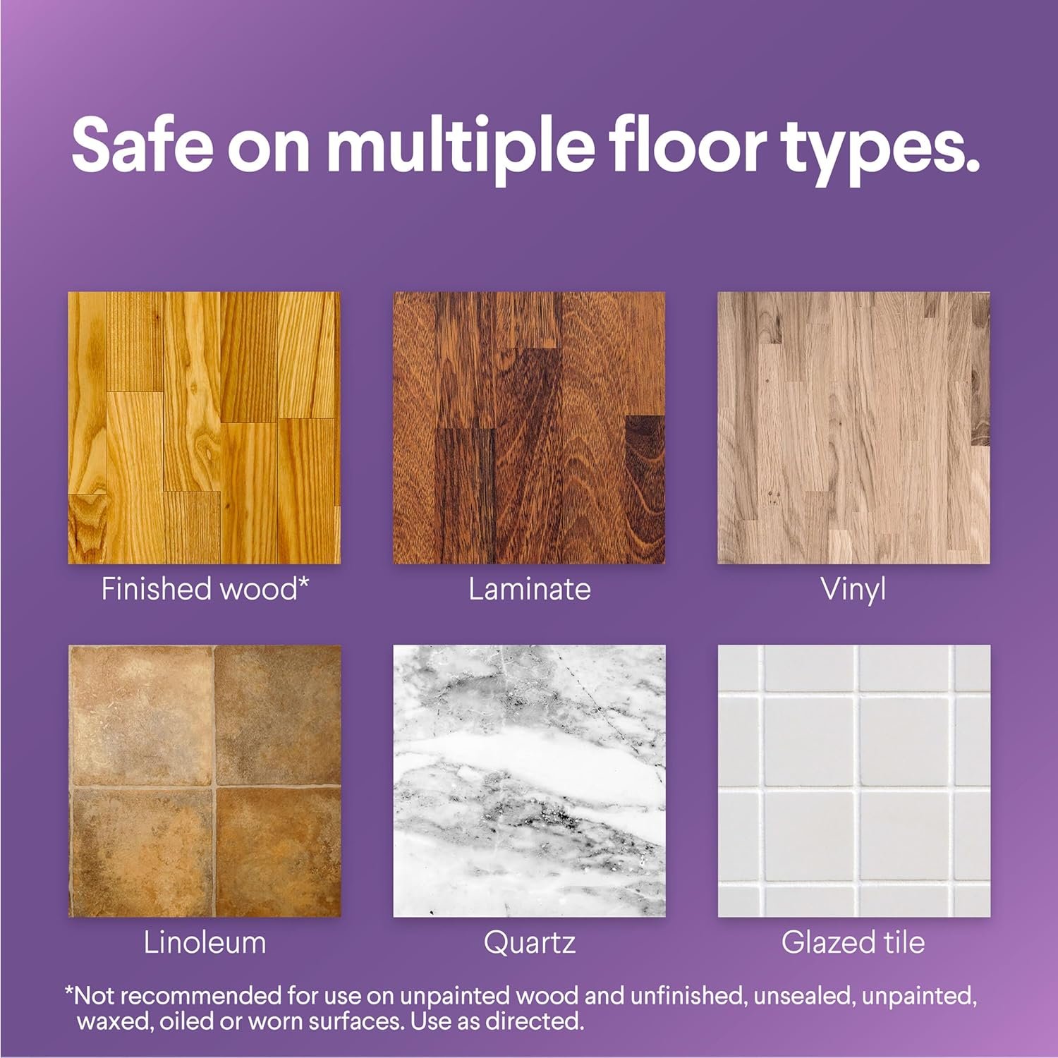 BLEACH FREE CLEAN: Bleach free formula cleans and disinfects a variety of hard, nonporous surfaces, including finished wood, laminate, vinyl, linoleum, quartz and glazed tile without harsh chemical smells