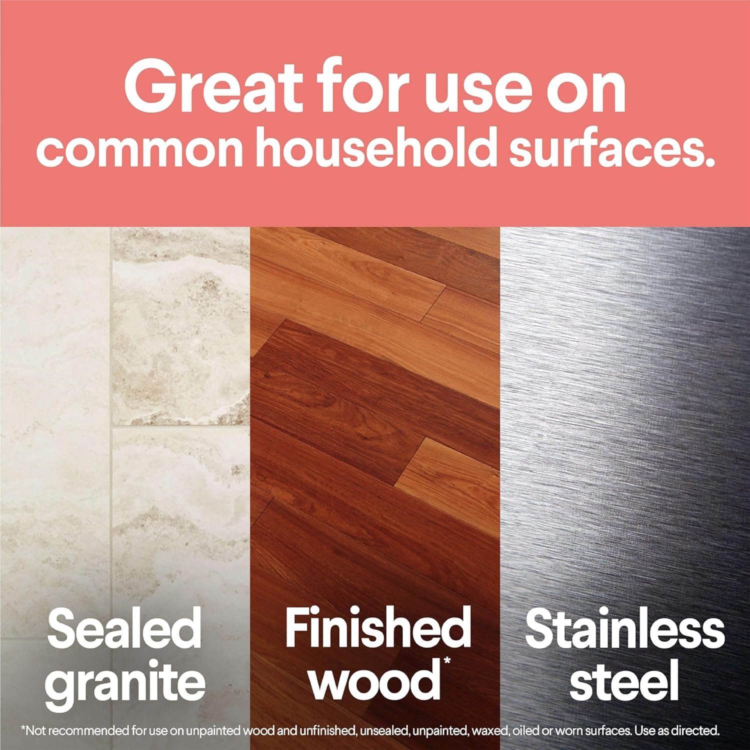 MULTI SURFACE CLEANER: Germs and messes occur on more than kitchen counters and bathroom surfaces; safely wipe down toys remotes or clean up car spills with these non bleach sanitizing wipes