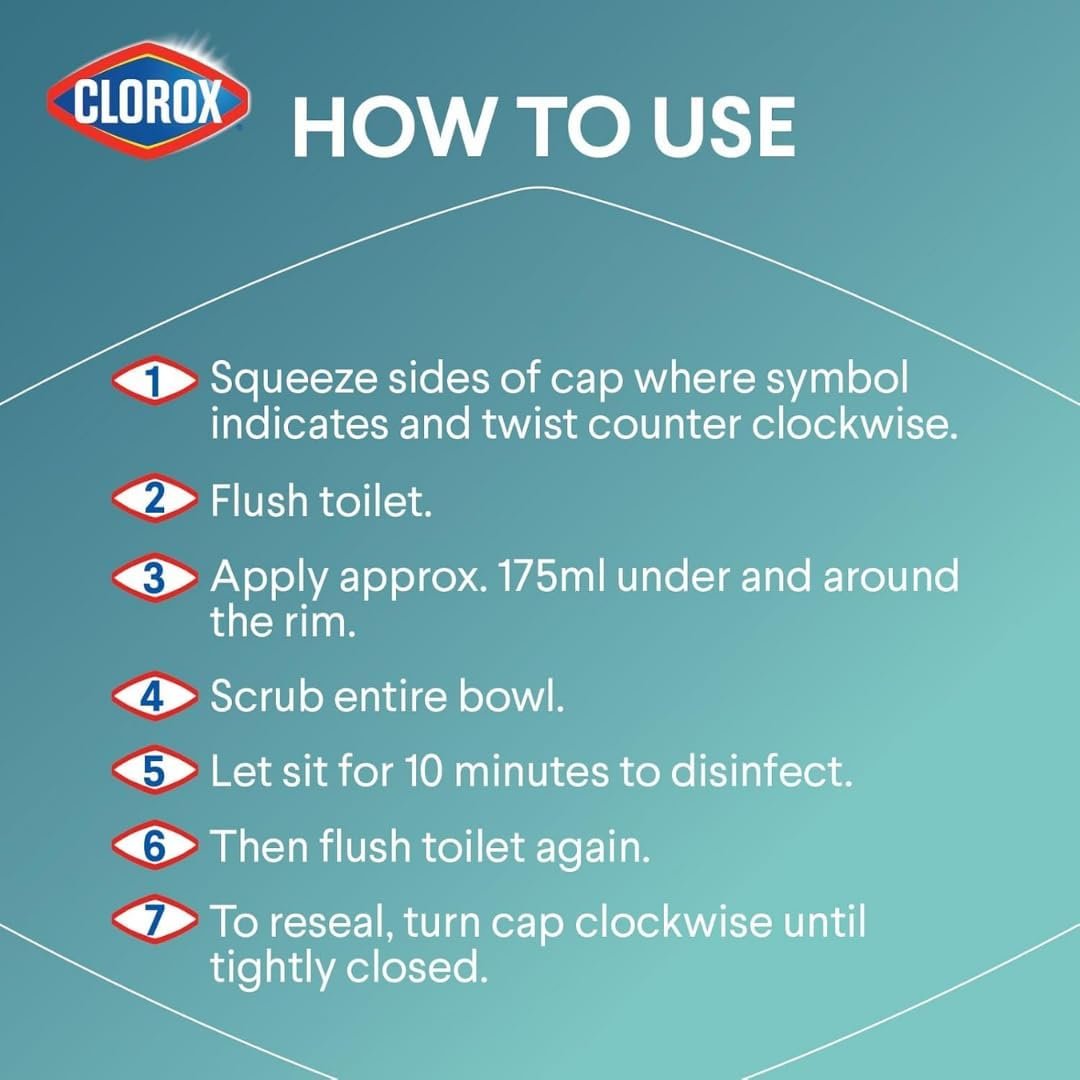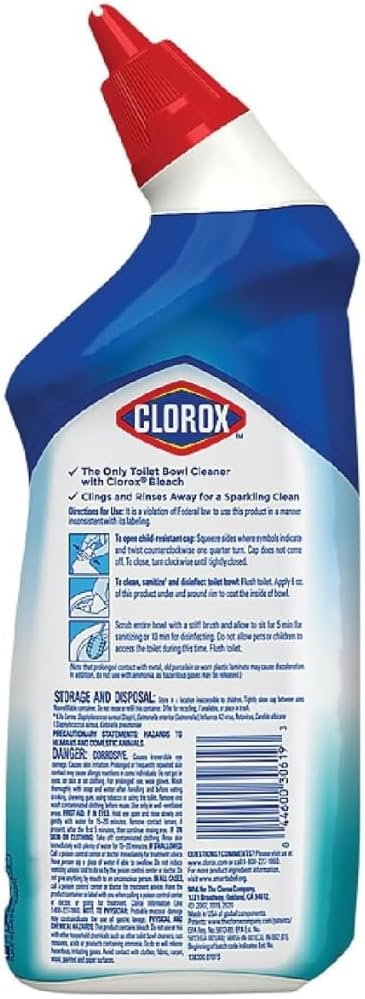 Whitens and Deodorizes: Whitens and brightens your toilet bowl with the power of Clorox Bleach, leaving a fresh Ocean Mist scent while the thick gel formula clings to the bowl for deep cleaning and stain removal.