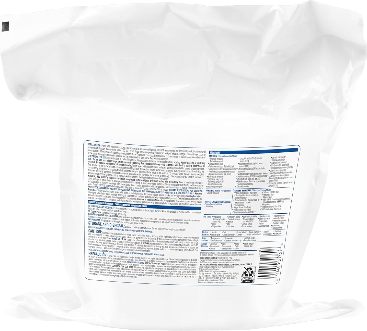 DISINFECTING WIPES: Disinfect against more than 40 bacteria, viruses and fungi in 2 minutes; meets EPA criteria for use against SARS-CoV-2, the virus that causes COVID-19