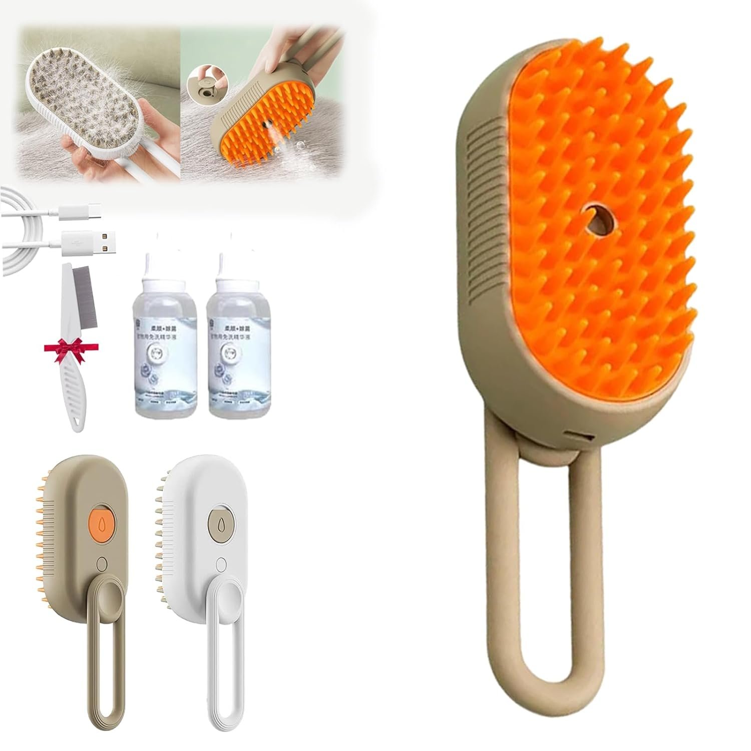 Cloud Care Cat Brush, Cloud Care Brush, Teazys Cat Brush, 3 in 1 Water Dog Brush with Handle, 3 in 1 Multifunctional Silicone Massager Brushes, Detachable Silicone Bristle Head (Brown set)