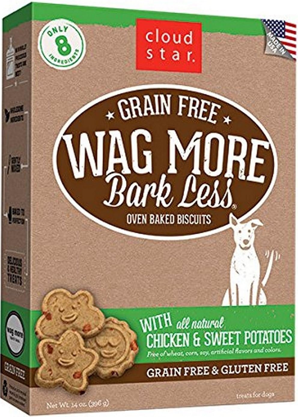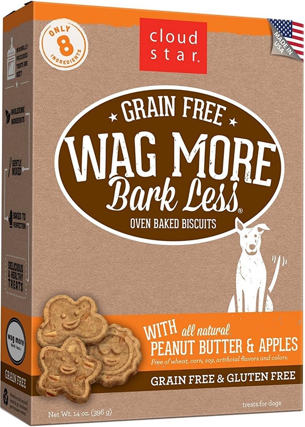 Cloud Star Wag More Bark Less Grain Free 14 Ounce Oven Baked Biscuits, 3 Pack Bundle (Chicken and Sweet Potatoes, Peanut Butter and Apples, and Pumpkin)