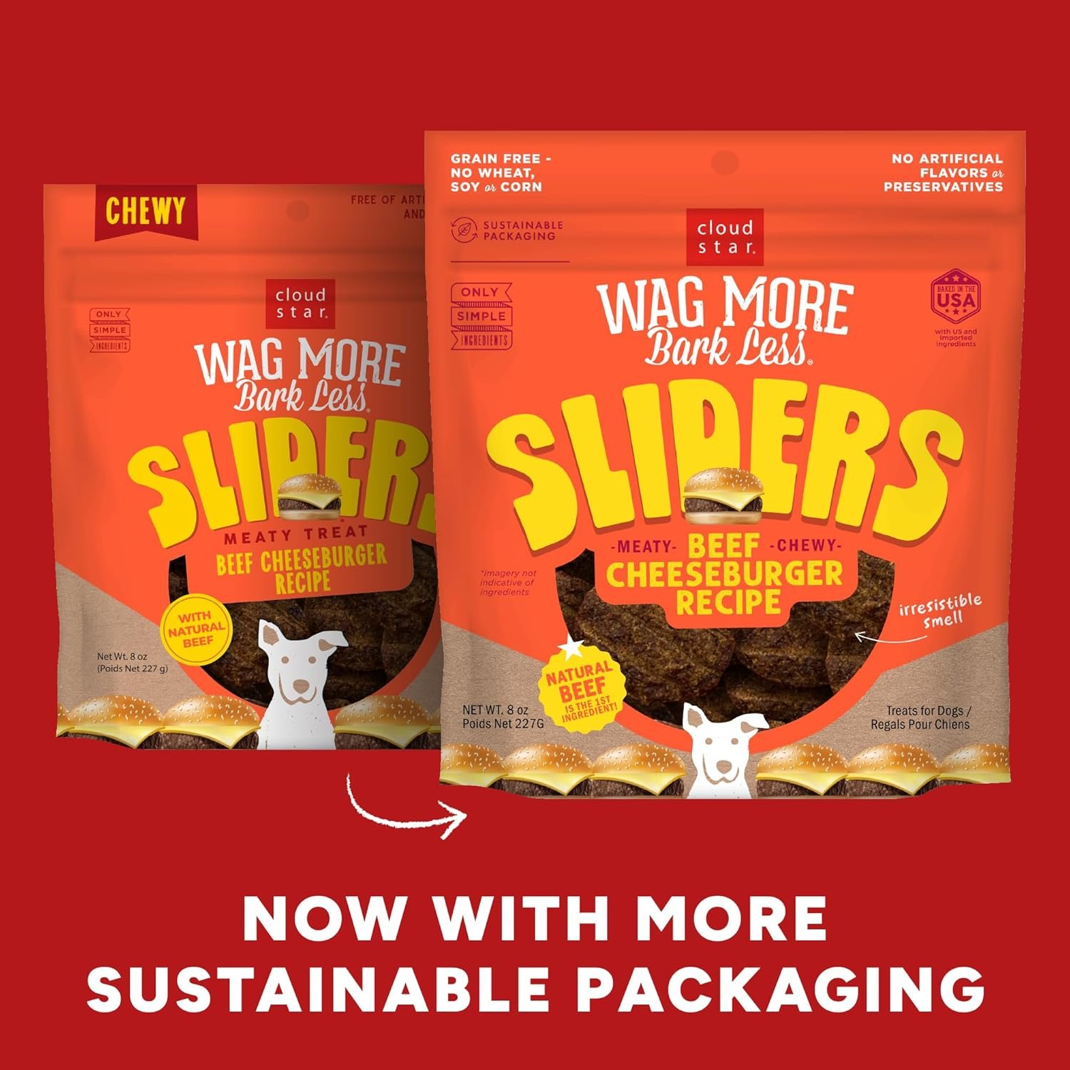 These Cloud Star® Wag More Bark Less® Sliders are packed with flavor! The irresistible smell and beef cheeseburger flavor makes these sliders the perfect treat to make your dogs day!