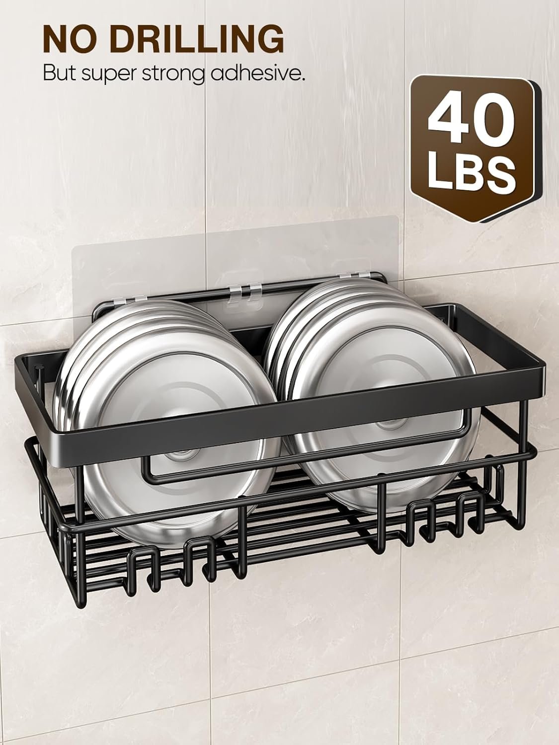 50 lb load bearing, reliable and stable: The newly upgraded strong adhesive can carry weights up to 50 lb and has been professionally tested for superior reliability. Keep shampoos, soaps, etc. in the shower tub in the bathroom and make them easy to access and use. When installed correctly, there is no need to worry about dropping.
