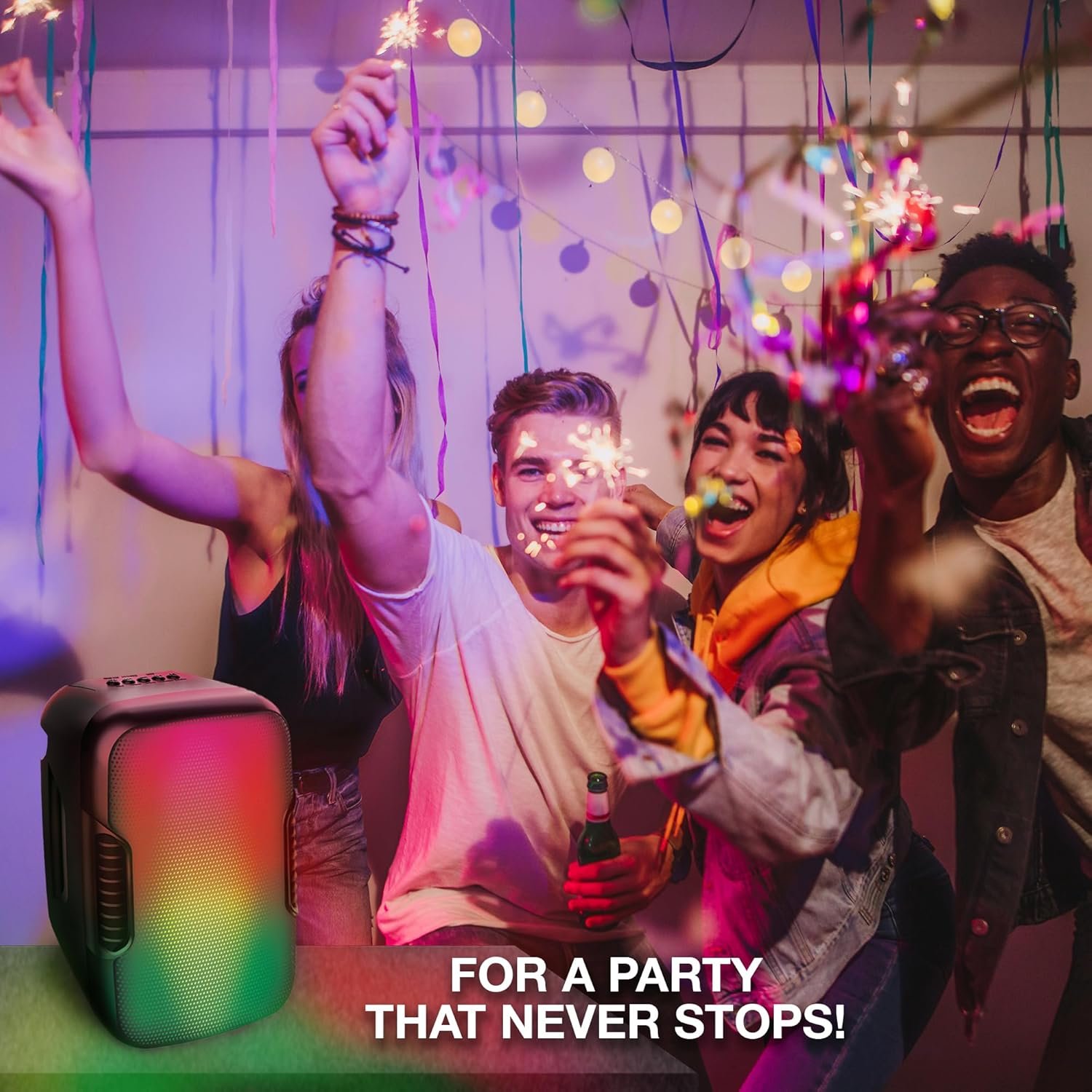 Wireless Freedom: Say goodbye to tangled cords and revel in the freedom of wireless connectivity, allowing you and your guests to dance, mingle, and party without limitations.