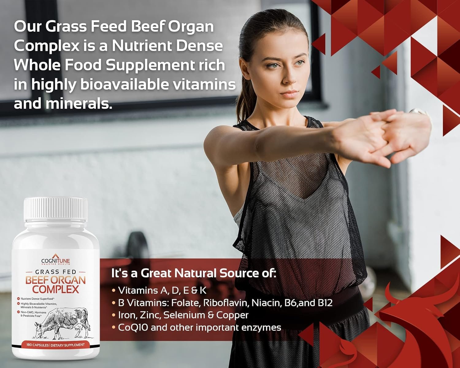 [Impressive Nutrient Profile] Our Organ Meat Supplement is a Nutrient Dense Superfood – rich in protein, amino acids, antioxidants such as CoQ10, and key vitamins and minerals such as Vitamins A, D, E & K, Zinc, Folate, Riboflavin, Vitamin B 12, and is an excellent source of Iron and Choline. Nourish your body with highly bioavailable essential nutrients in our grass fed organ complex.