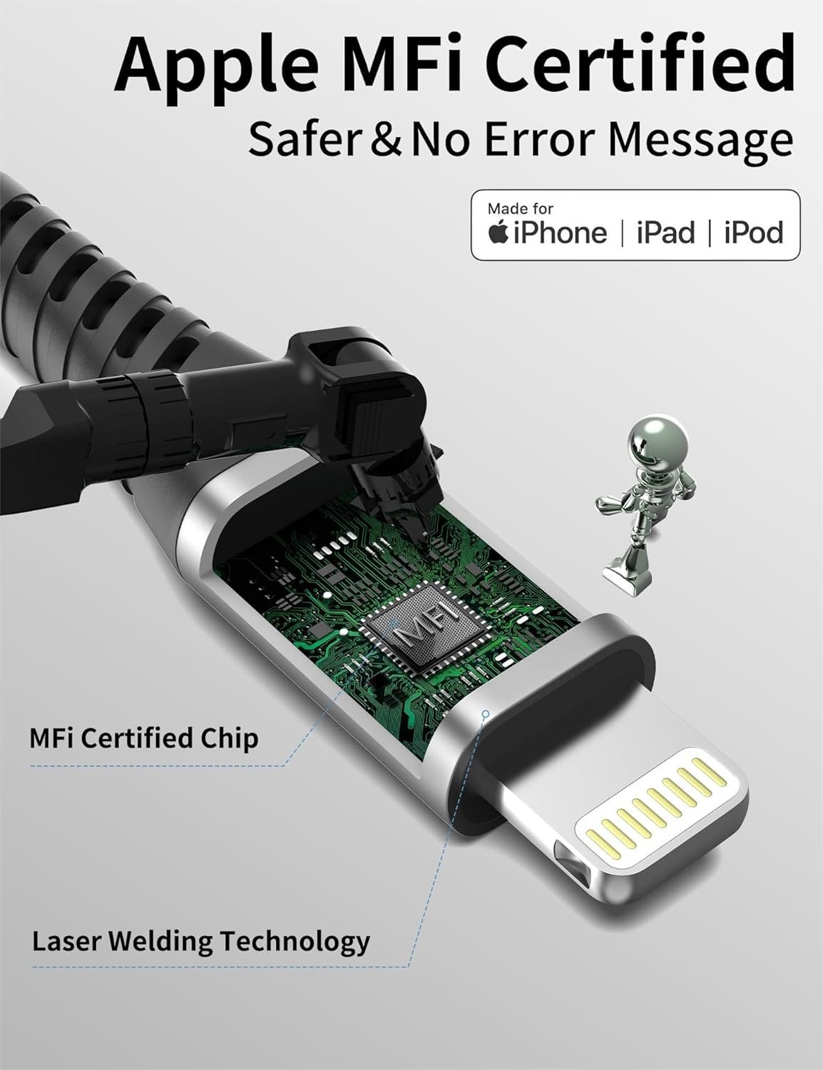 【MFi Certified & Support CarPlay】Each Coiled Apple Charger Cable is built-in with an Apple original chipset to ensure 100% compatibility with your iPhone, and be able to connect to the vehicles’computer to initiate Apple CarPlay effortlessly.