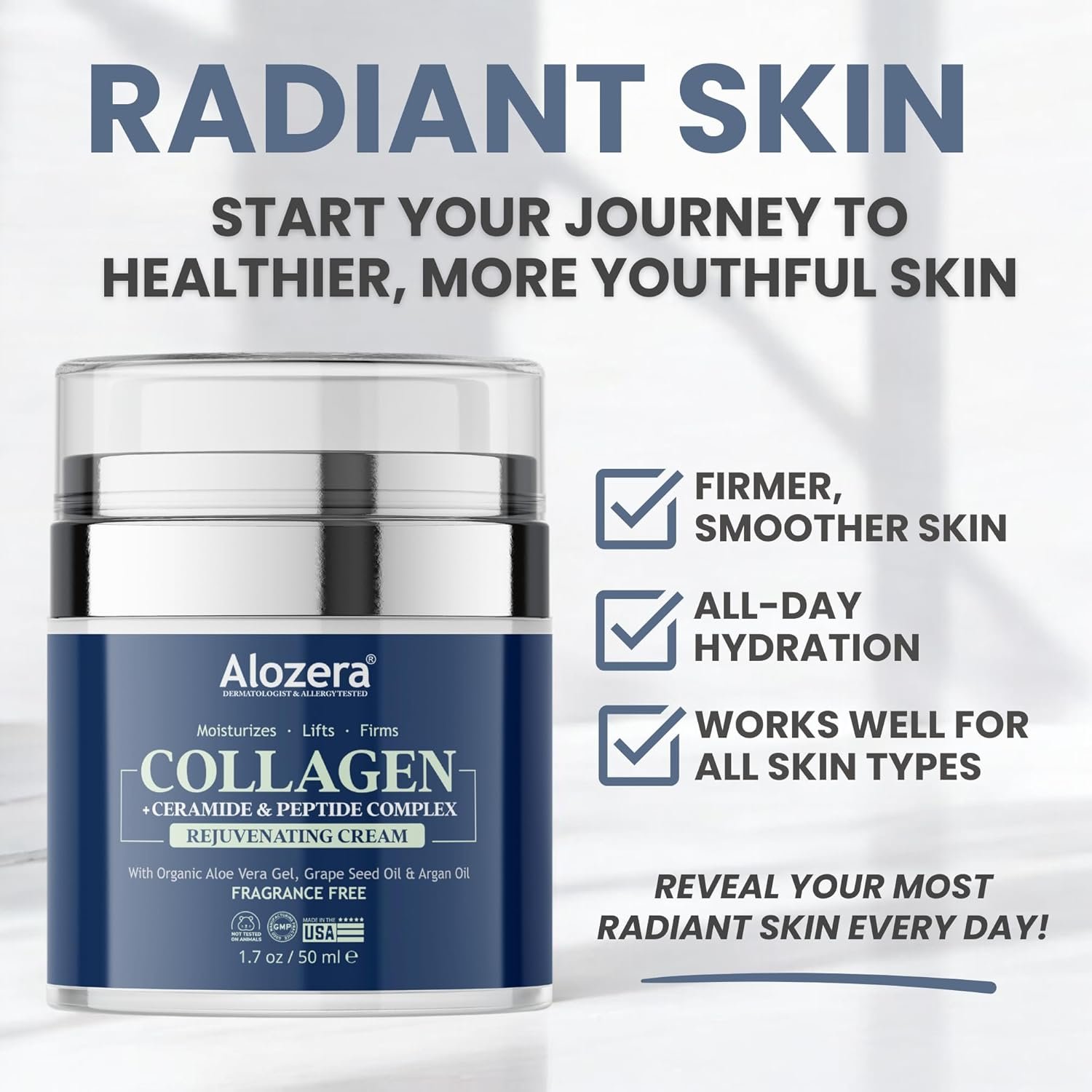 Collagen Face Cream – Anti Aging Skincare for Wrinkles, Firming & Lifting – Protect & Repair Aging Skin with Collagen and Ceramide & Peptide Complex – Made in USA, 1.7 oz.