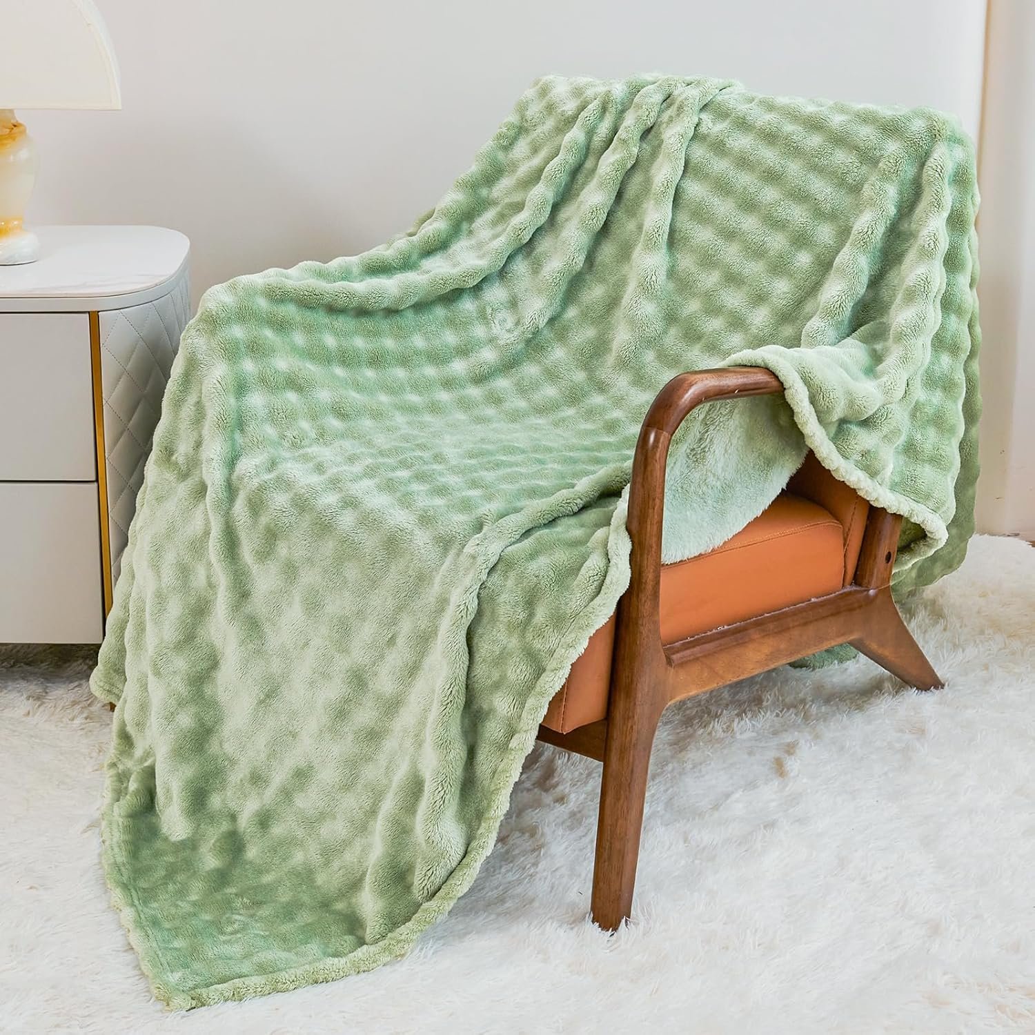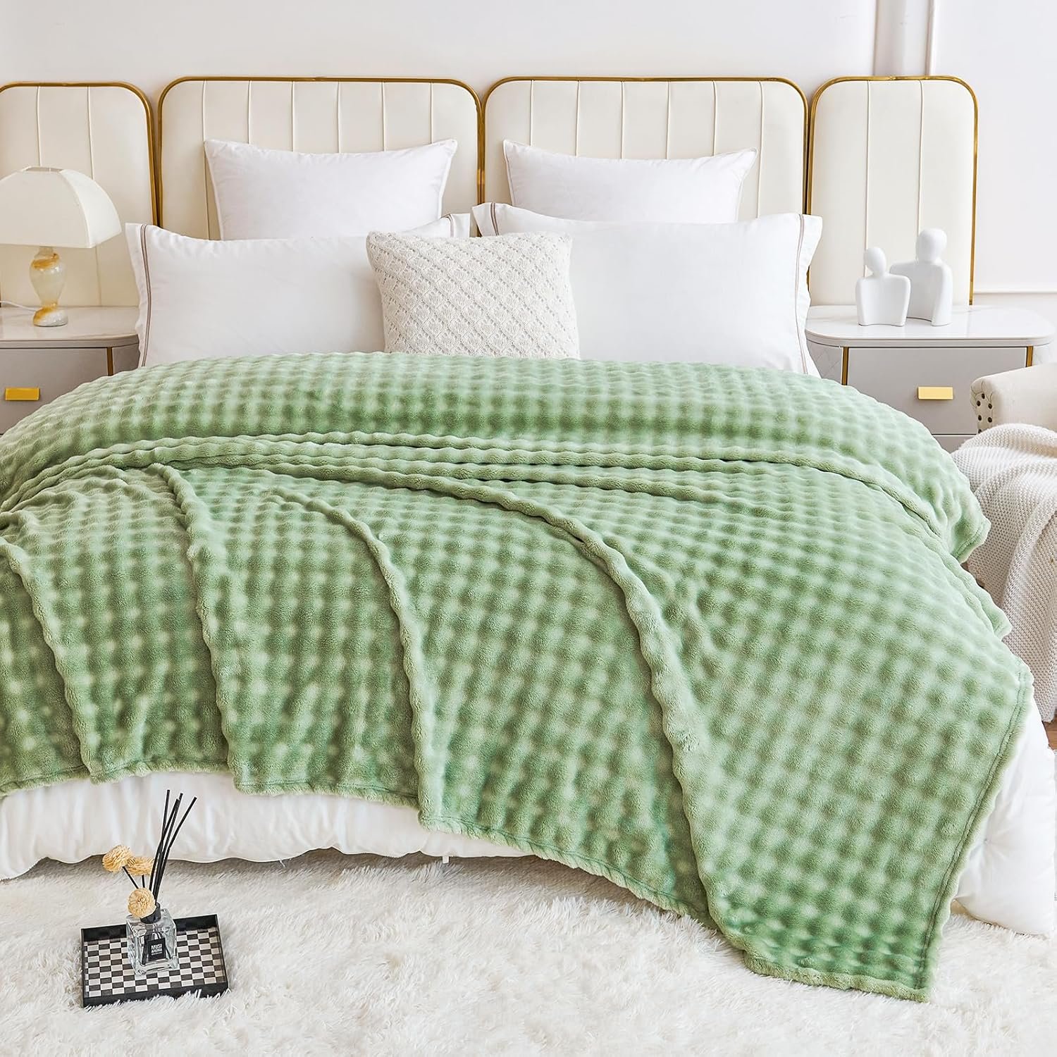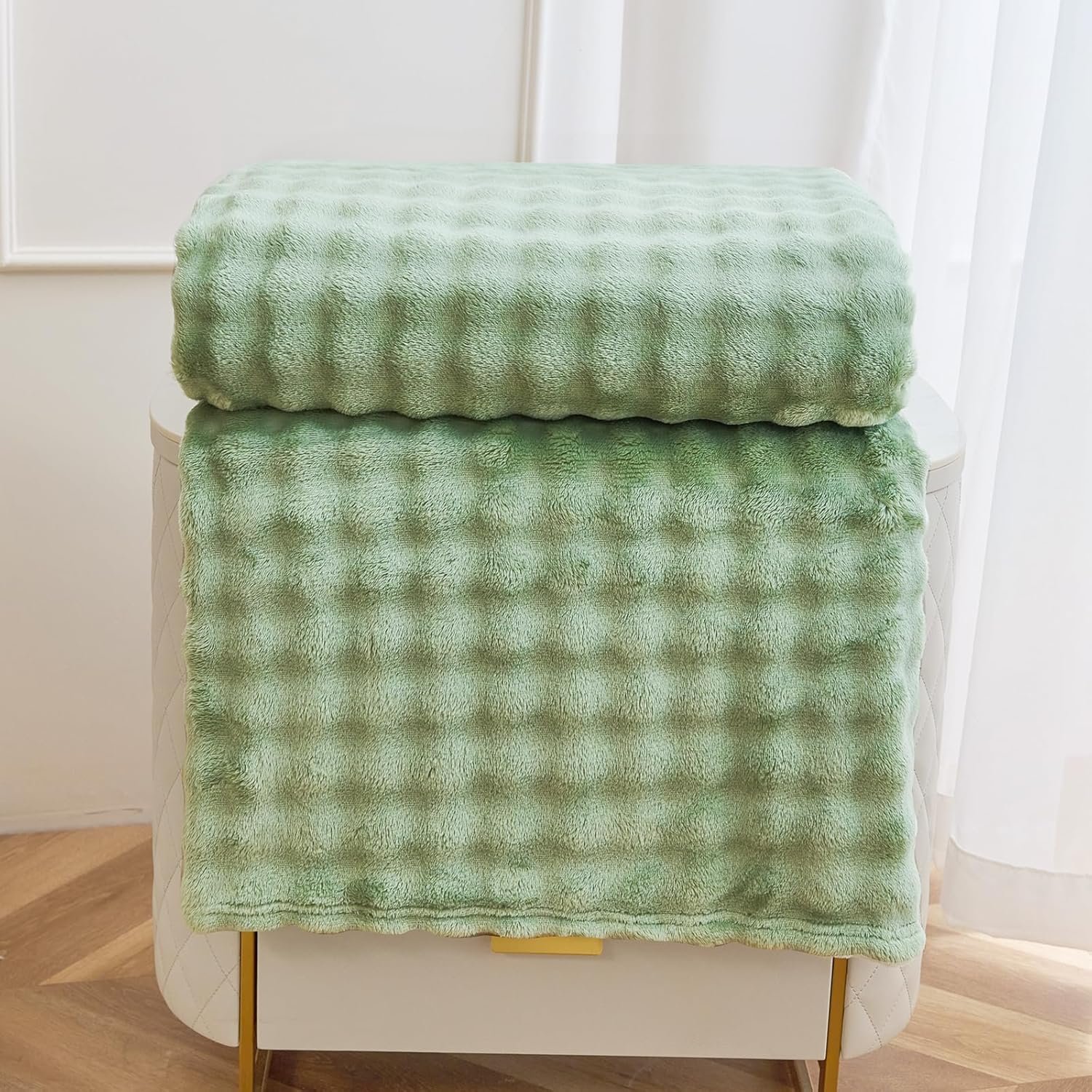 Comelady Fleece Throw Blanket,Super Soft Throw Blanket for Couch,3D Bubble Warm Fluffy Blanket for Bed Sofa Room Decor-Lightweight Cozy Fuzzy Blanket for All Seasons(Sage Green,50″×60″)
