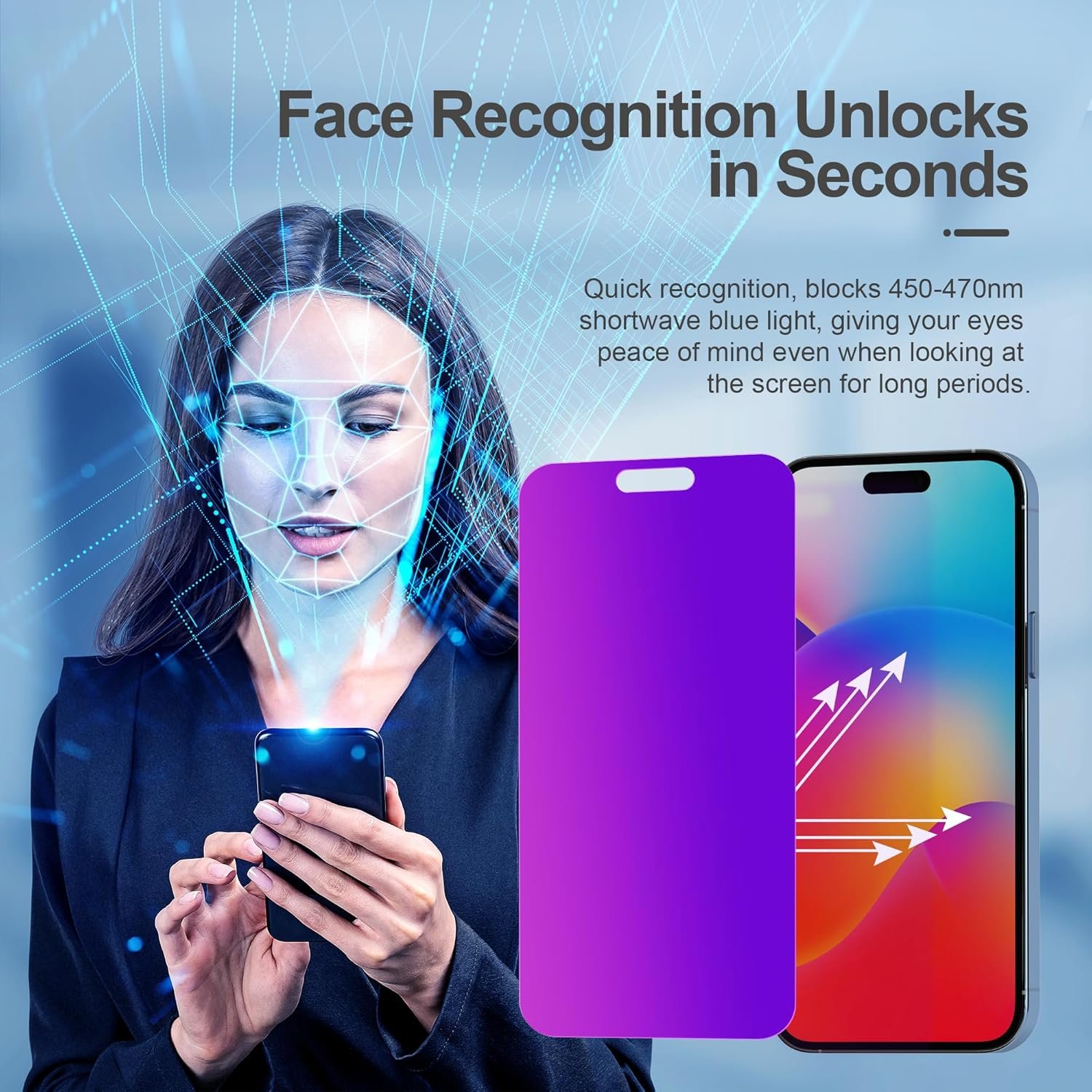 28° Privacy Protection: Privacy screen protector for iPhone 15 Pro Max, the screen only visible to people within 28°, people beside only see different shades of purple screen. Protect your privacy and sensitive information when in public.