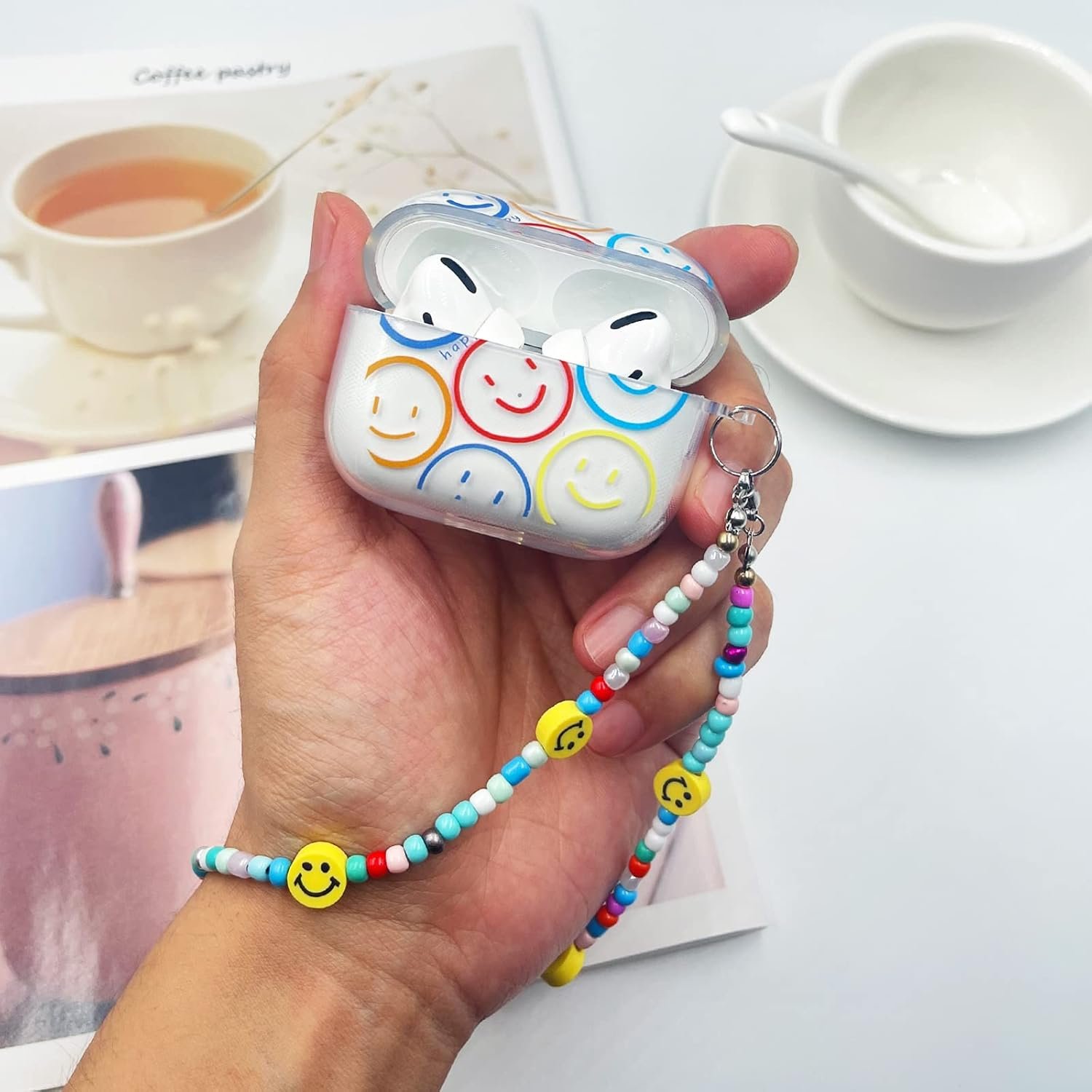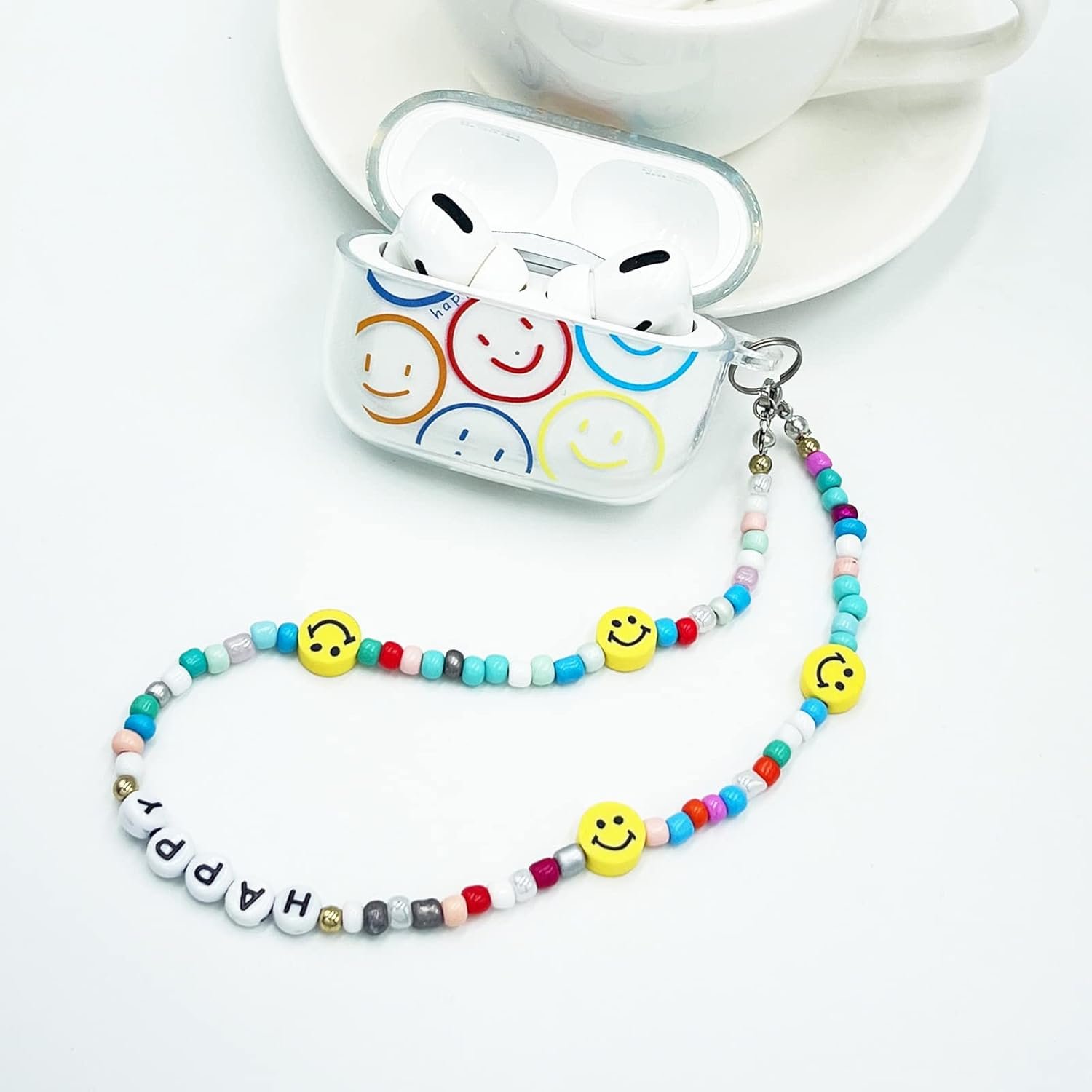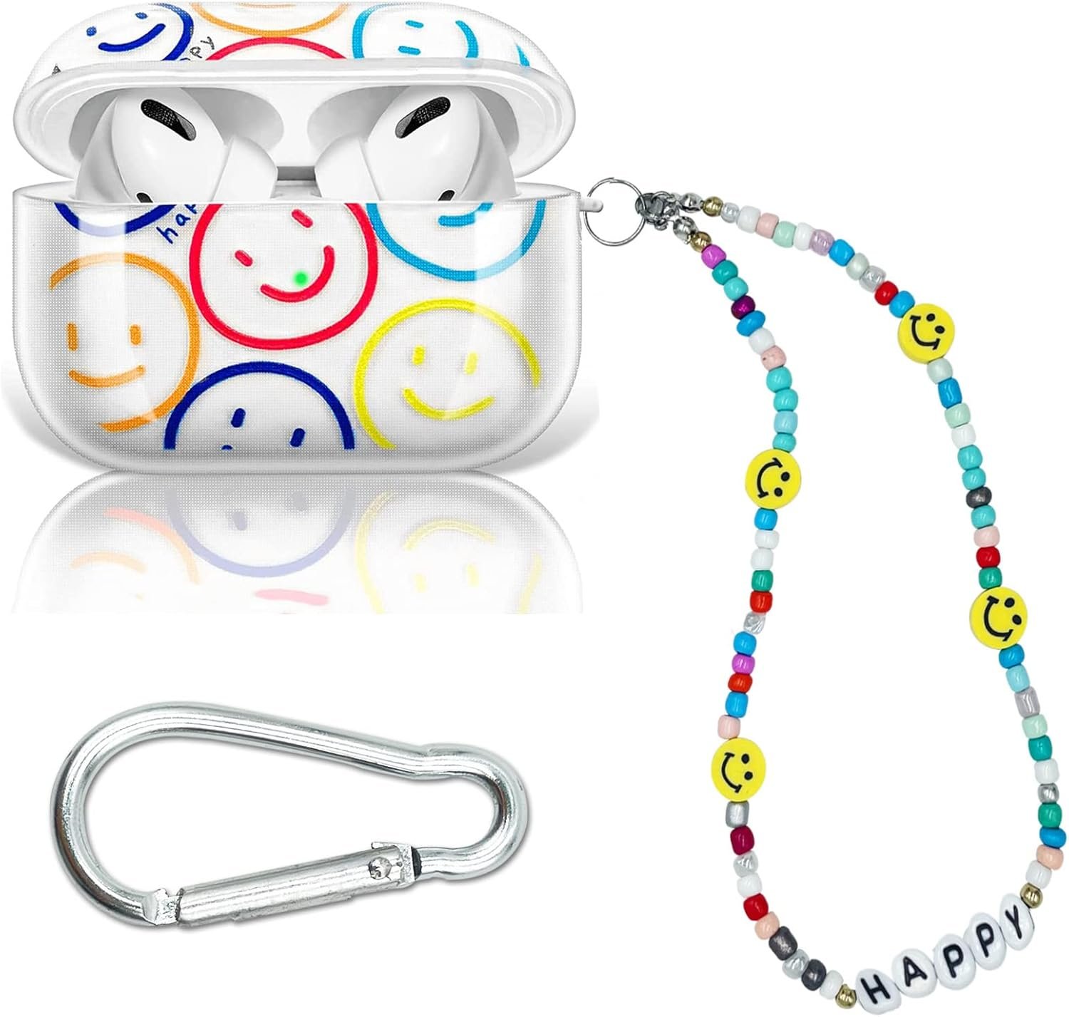Cute Smile Face Lanyard: Come with cute bead smile face lanyard, make your AirPod Pro look more stylish. Easy to find your airpods Pro in bag and carry it to anywhere