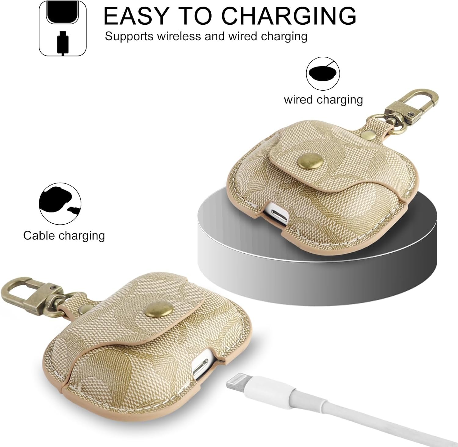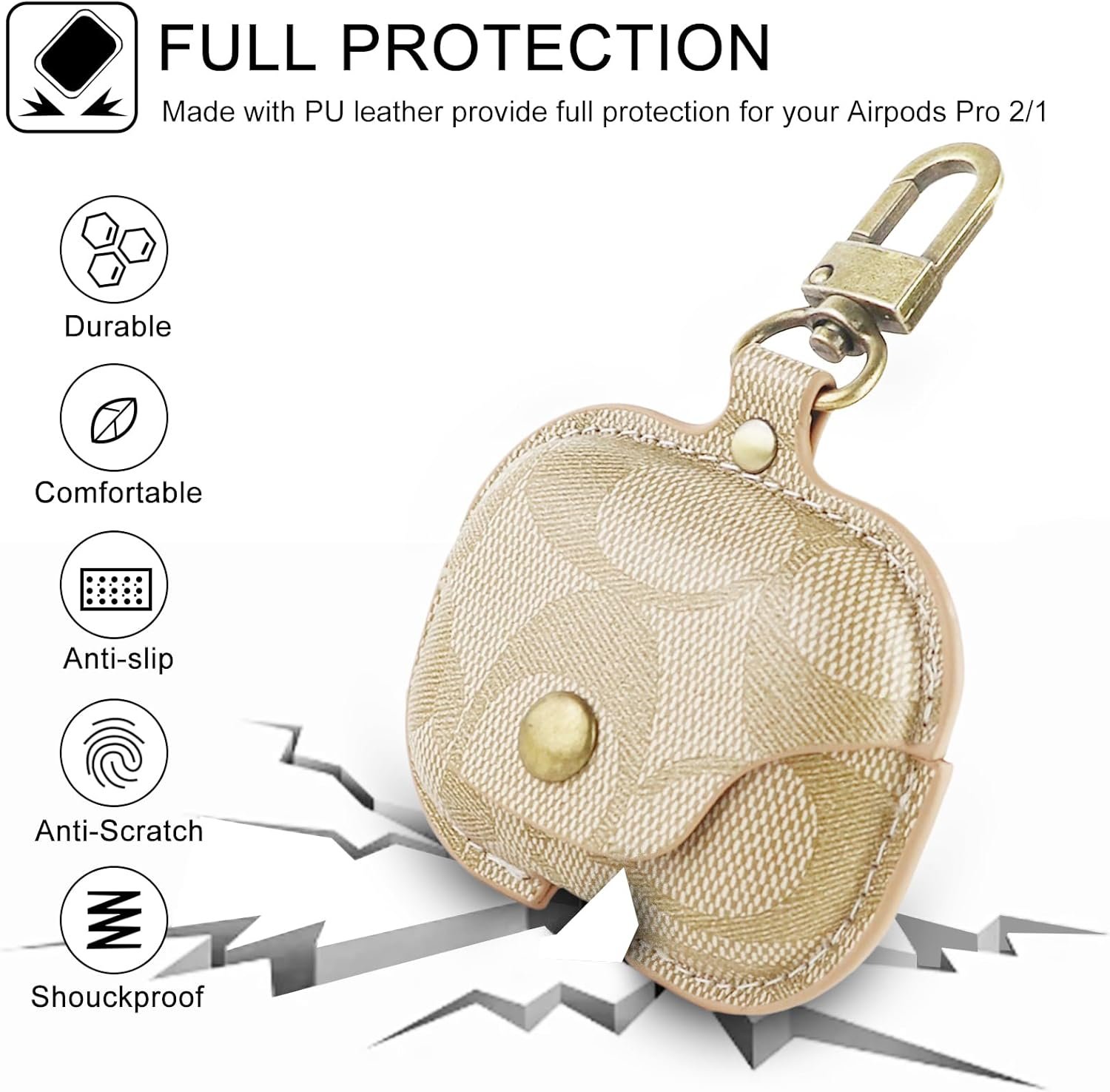 Luxury Compatible with Designer AirPods Pro 2nd/1st Generation Case Cover Protective Leather Case Skin for Airpods Pro 2&1 Feature: Compatible with AirPods pro 2&1 case Fine workmanship, precise cut-out, Easy access to the charging port It can be attach to your backpacks, handbag etc.