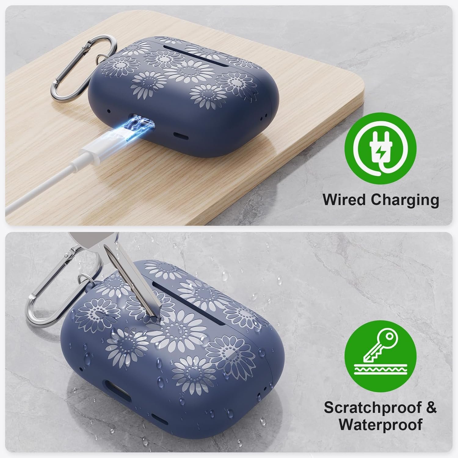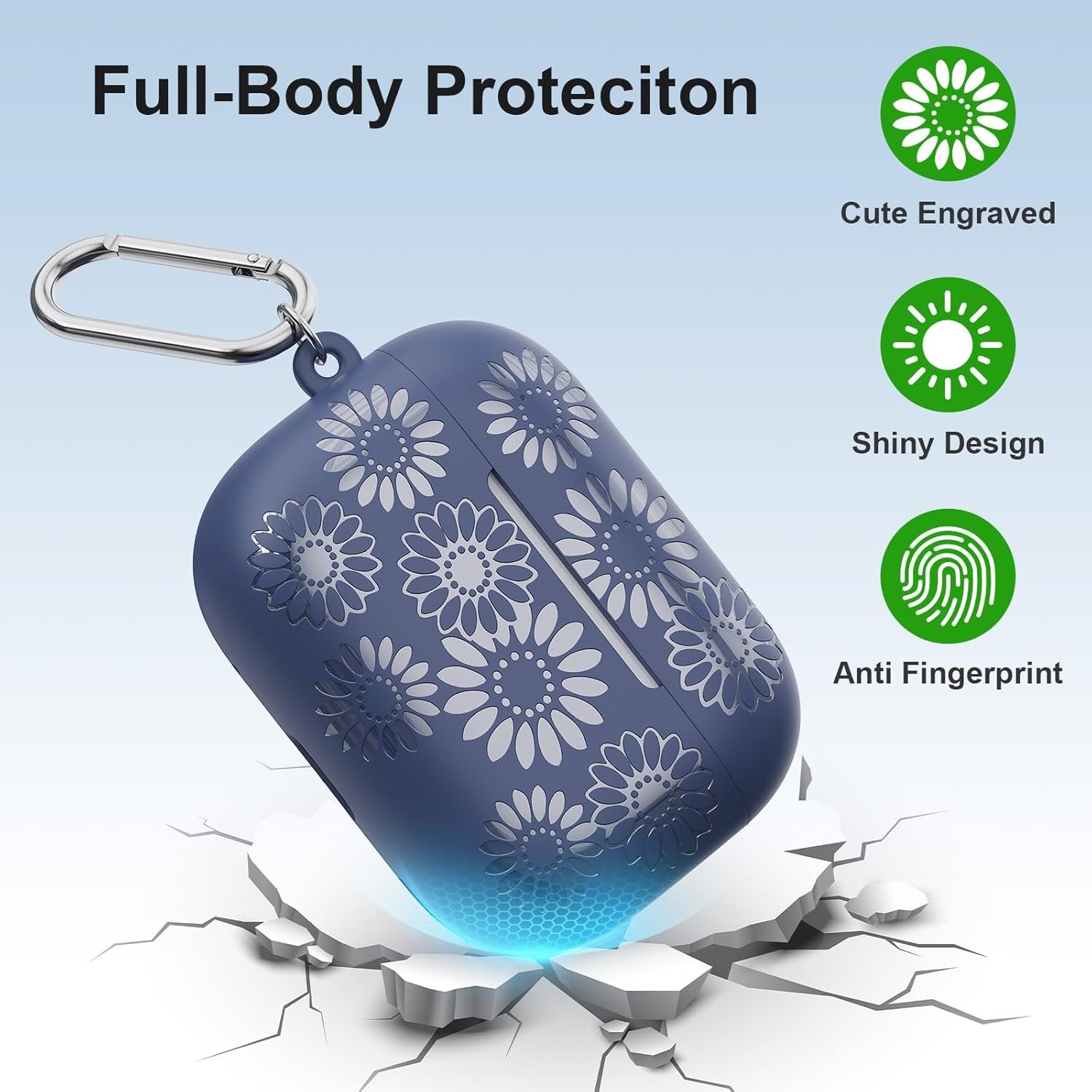 Newest Engraved Glossy Sunflower:The women Airpod Pro case cover features glossy carvings of sunflower motifs, showcasing a captivating interplay of light and shadow. High definition and strong three-dimensional sense. Does not fade over time like other printed pattern case. This newest pattern design will make your AirPods Pro look more stylish, and elegant