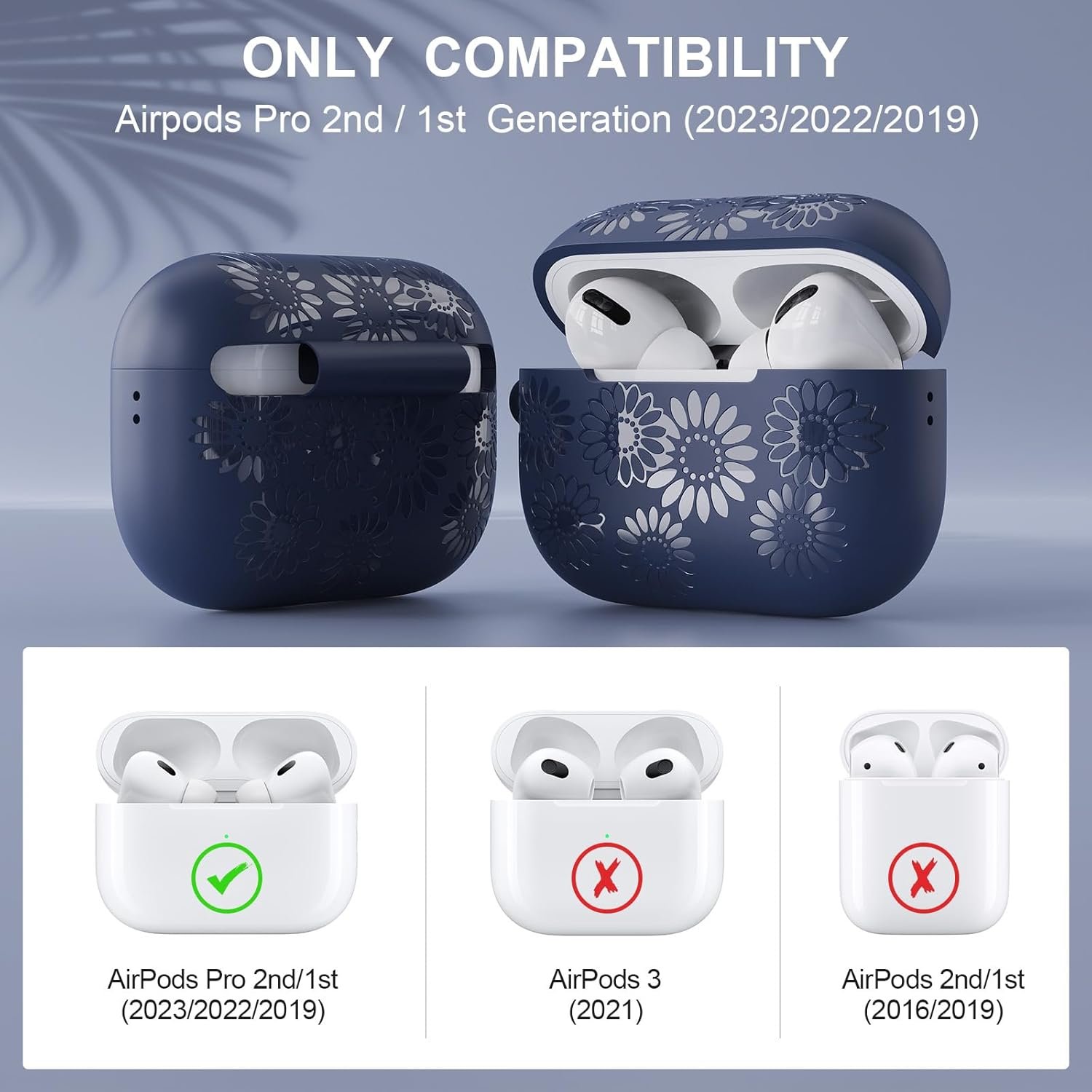 Compatible Model:Sunflower print pattern engraved soft silicone headphone case accessories. Our cute soft silicone full protective case compatible with Apple AirPods Pro 2nd Generation (2023/2022) (USB-C/Lightning cable) and AirPods Pro 1st Generation (2019) . Package include: 1 x Silicone Case, 1 x Case Keychain (AirPods Pro is not included)