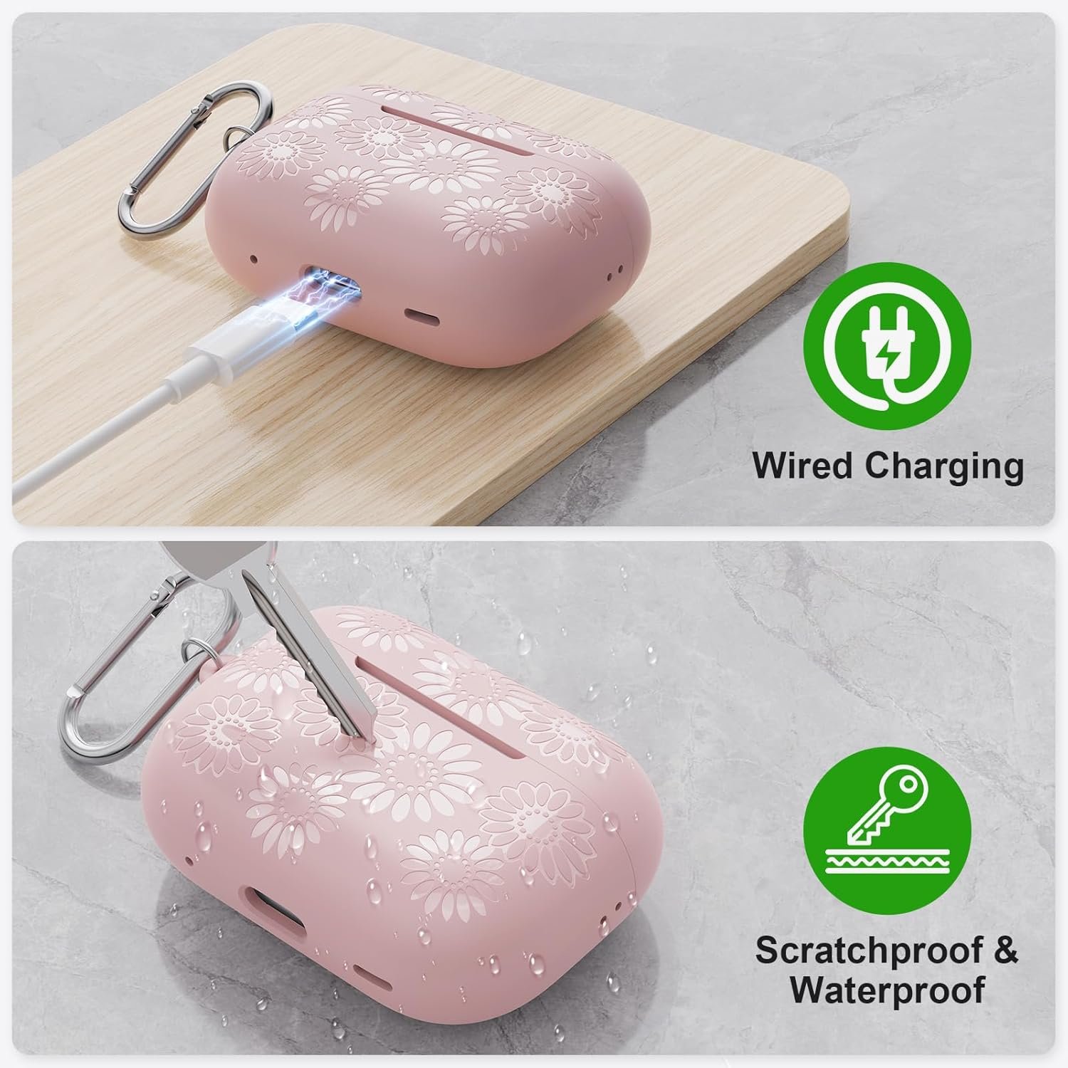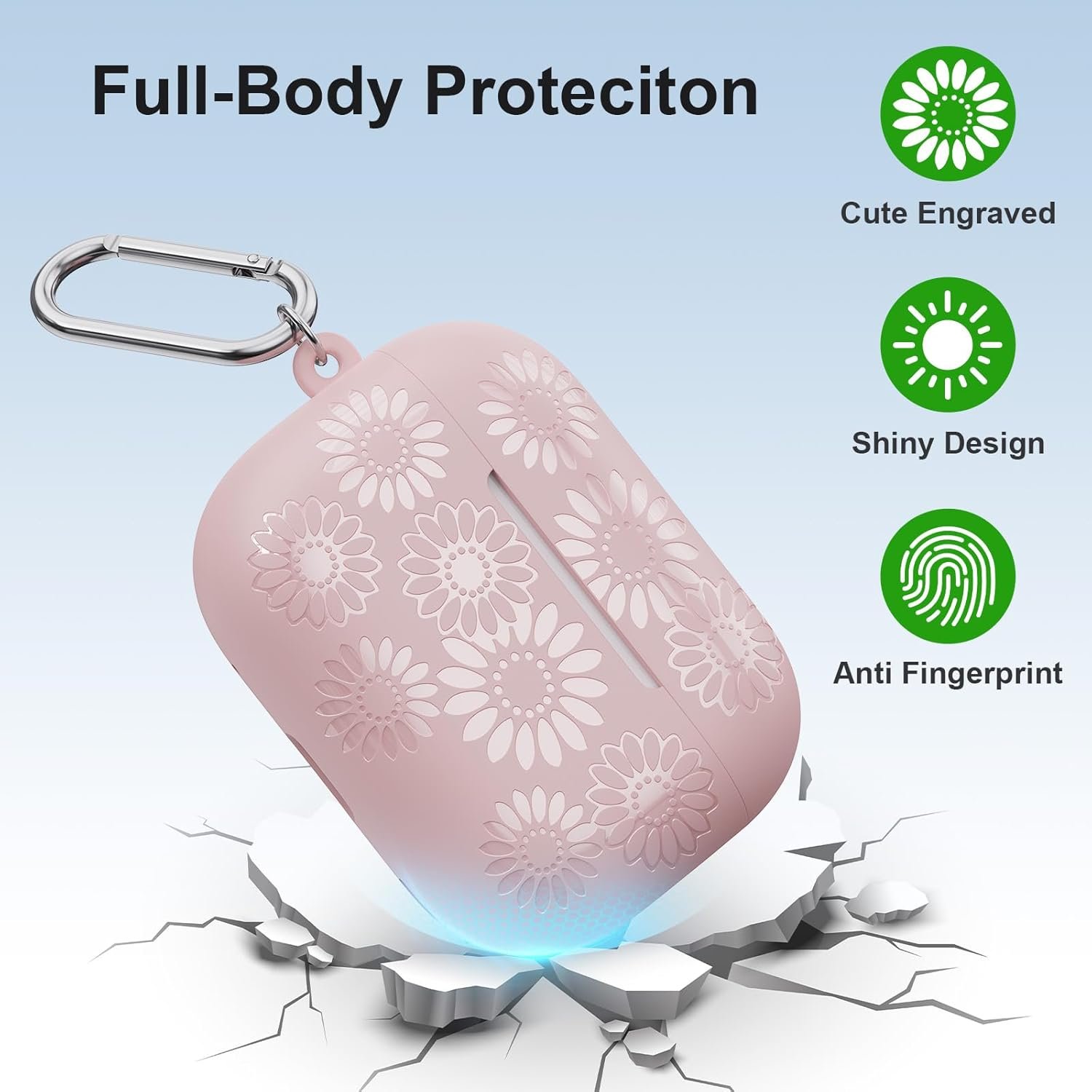 Newest Engraved Glossy Sunflower:The women Airpod Pro case cover features glossy carvings of sunflower motifs, showcasing a captivating interplay of light and shadow. High definition and strong three-dimensional sense. Does not fade over time like other printed pattern case. This newest pattern design will make your AirPods Pro look more stylish, and elegant