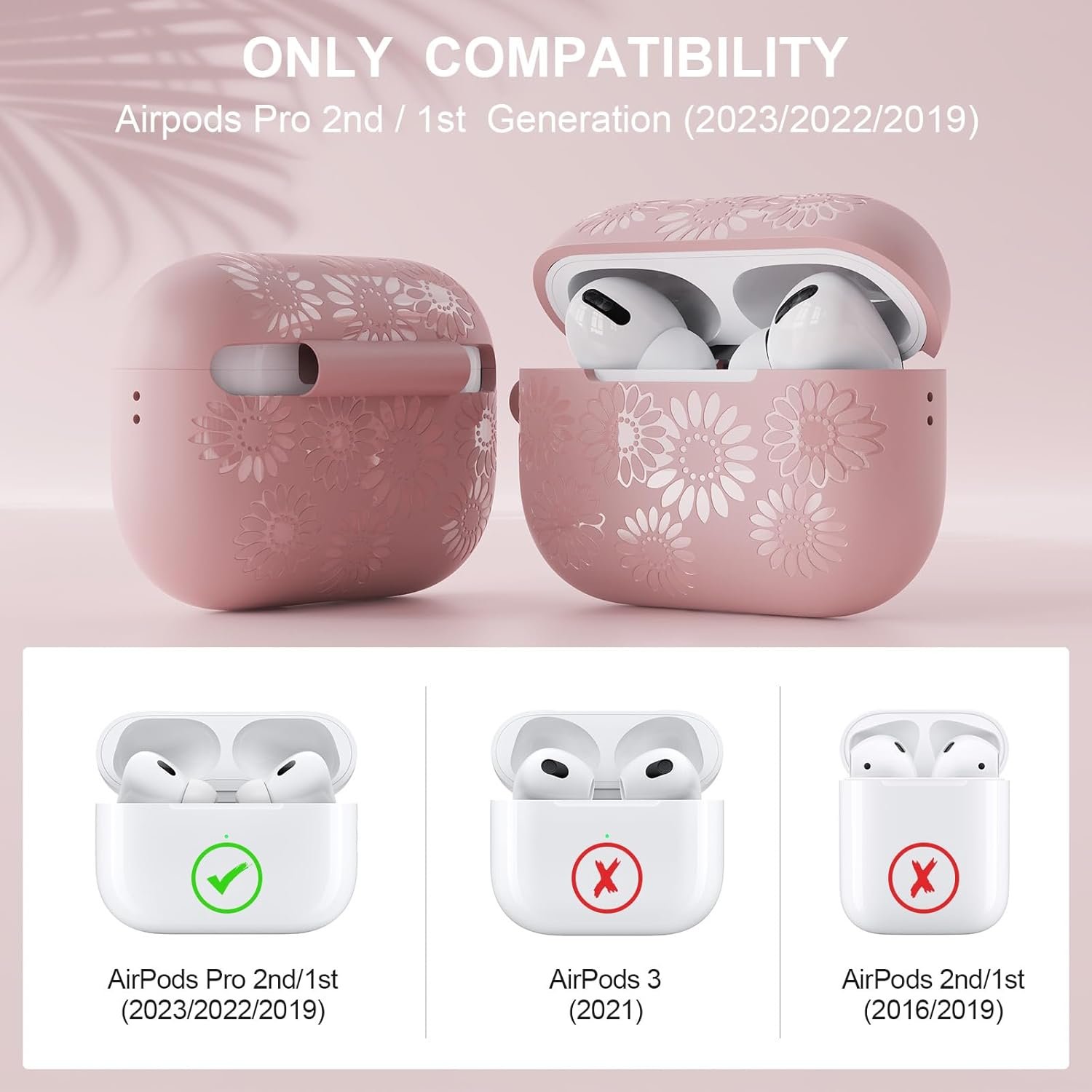 Compatible Model:Sunflower print pattern engraved soft silicone headphone case accessories. Our cute soft silicone full protective case compatible with Apple AirPods Pro 2nd Generation (2023/2022) (USB-C/Lightning cable) and AirPods Pro 1st Generation (2019) . Package include: 1 x Silicone Case, 1 x Case Keychain (AirPods Pro is not included)