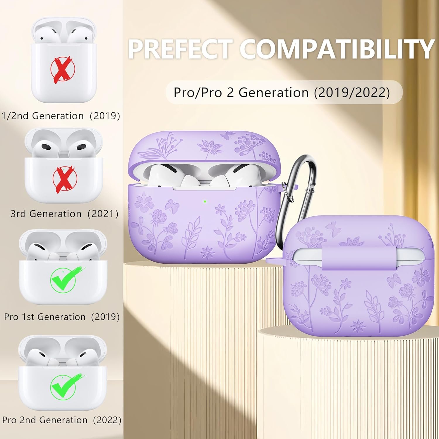 【Compatible with Airpod Pro 1st/2nd Gen】Flower engraving case compatible with airpods pro 1st/2nd generation. Compatible with airpod pro 2nd generation case cover perfect fits for your headphones.