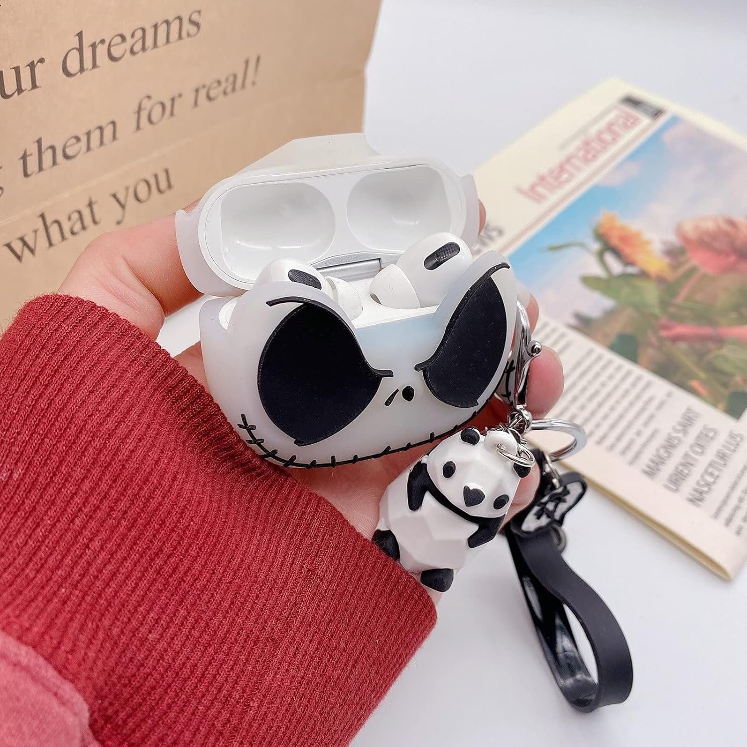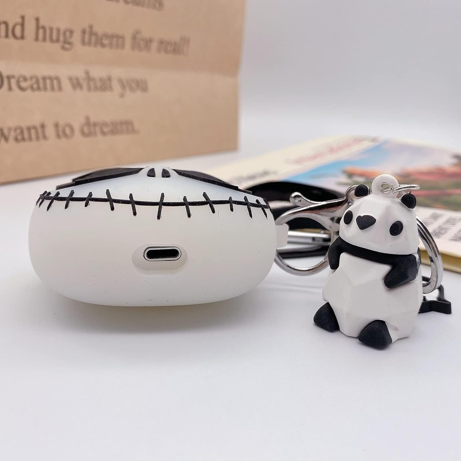 【Removable Keychain】 For this purpose, we have equipped a cute Panda metal keychain. Whether you are going out for office or exercising, just match the keychain with AirPods and hang it on your backpack, key or belt, you can carry it with you and go out easily.
