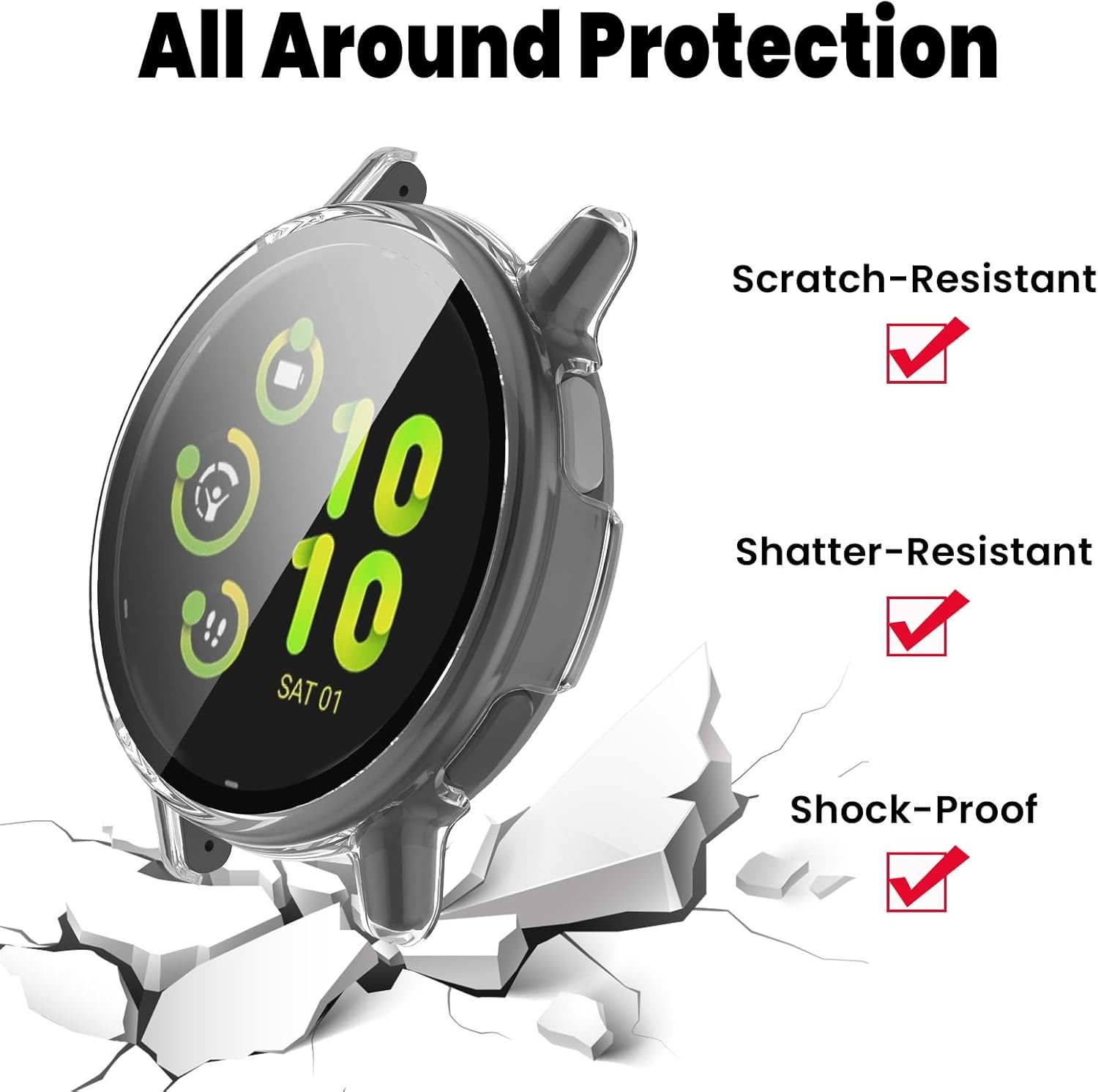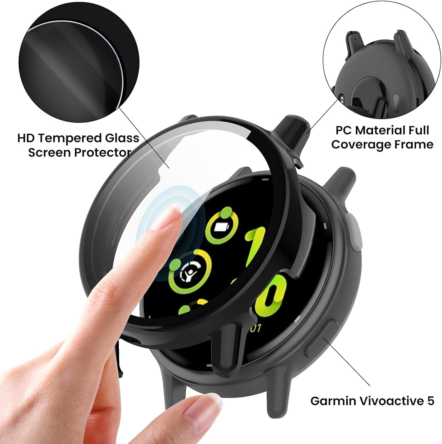 【All-Around protection】PC material covers your Vivoactive 5 screen and edges perfectly. Electroplate frame, well-polished, resist daily wear and tear.