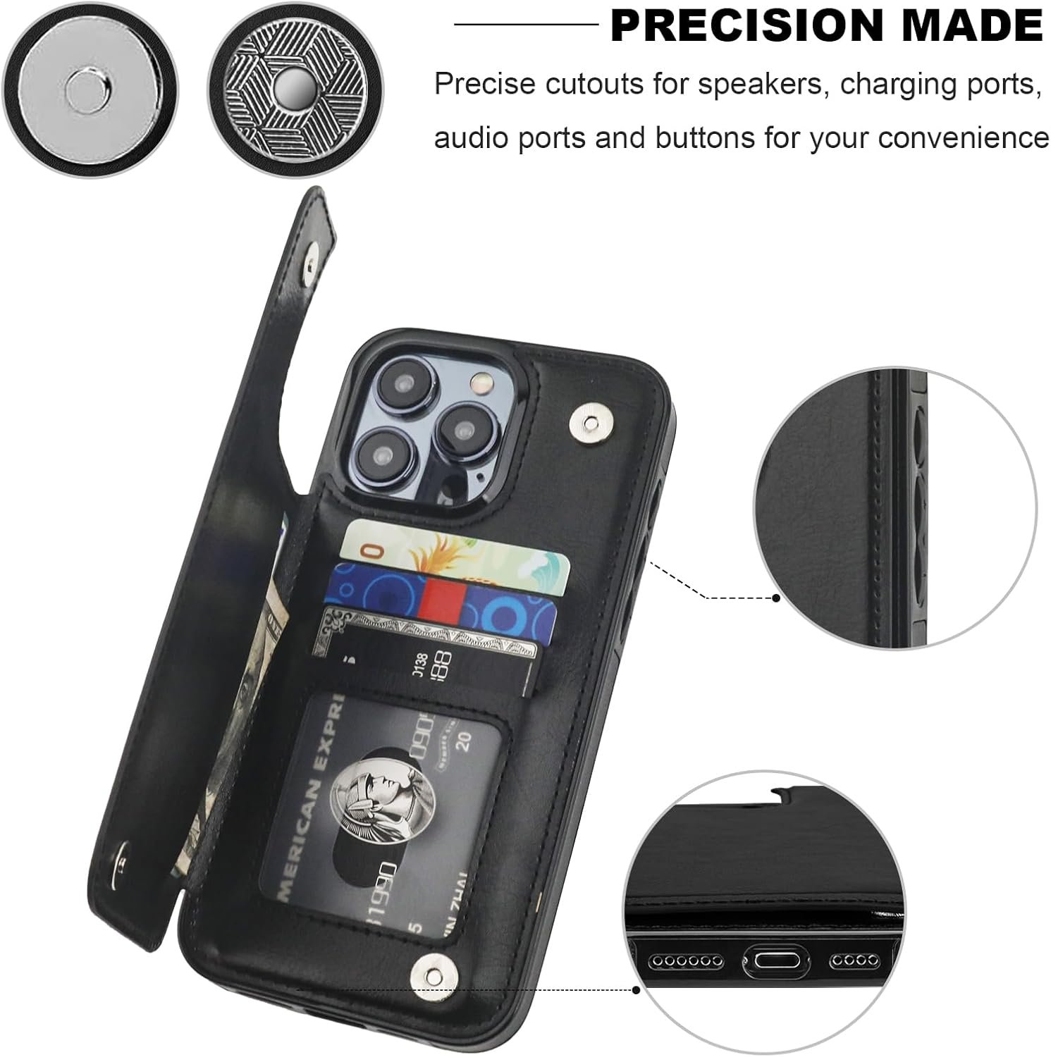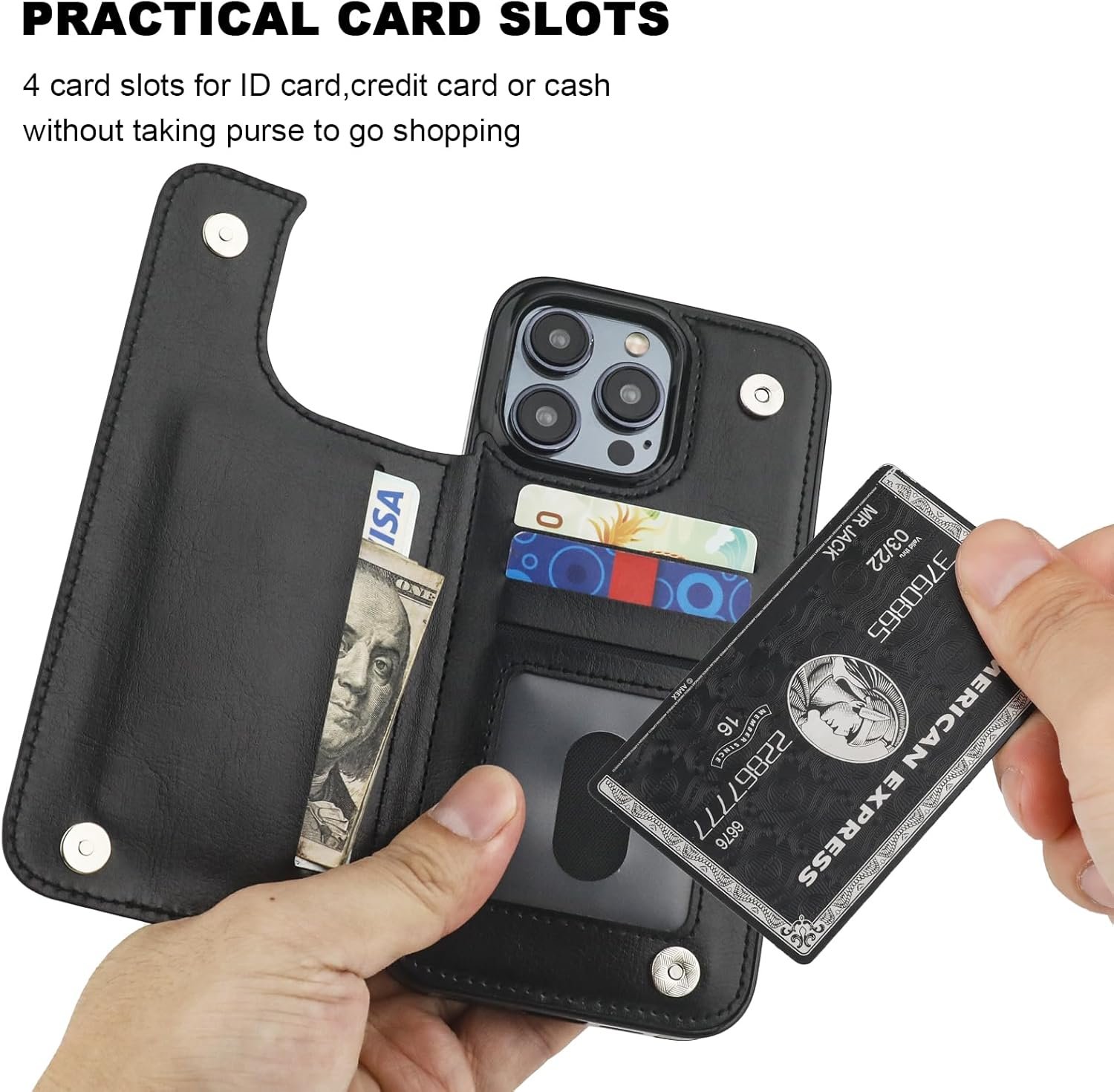The wallet case features multiple cardholders at the back, without taking purse to outdoor.