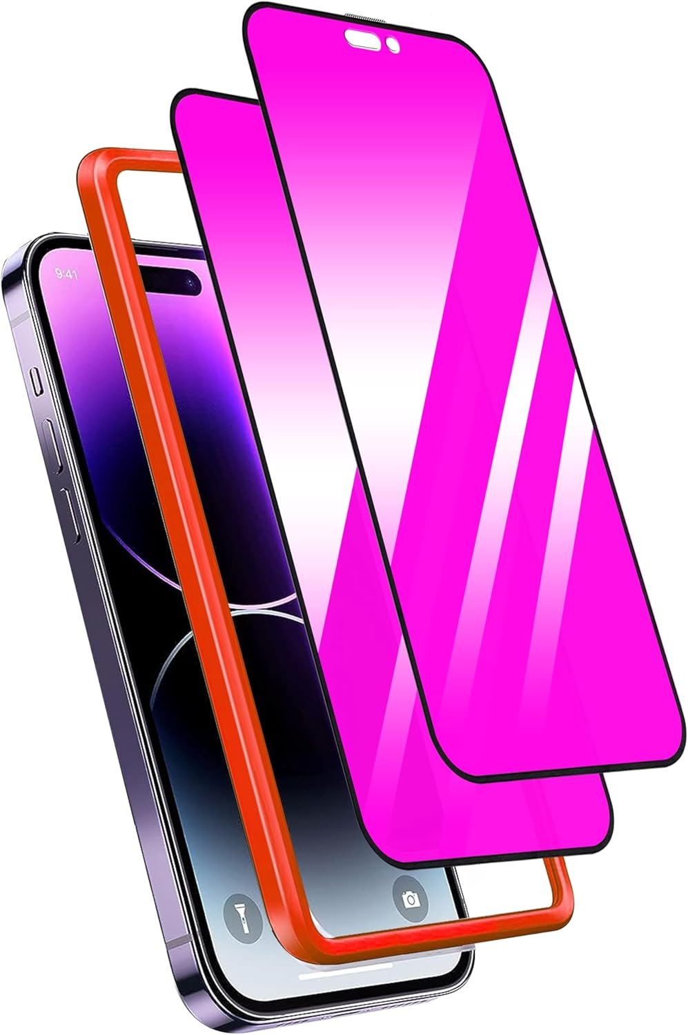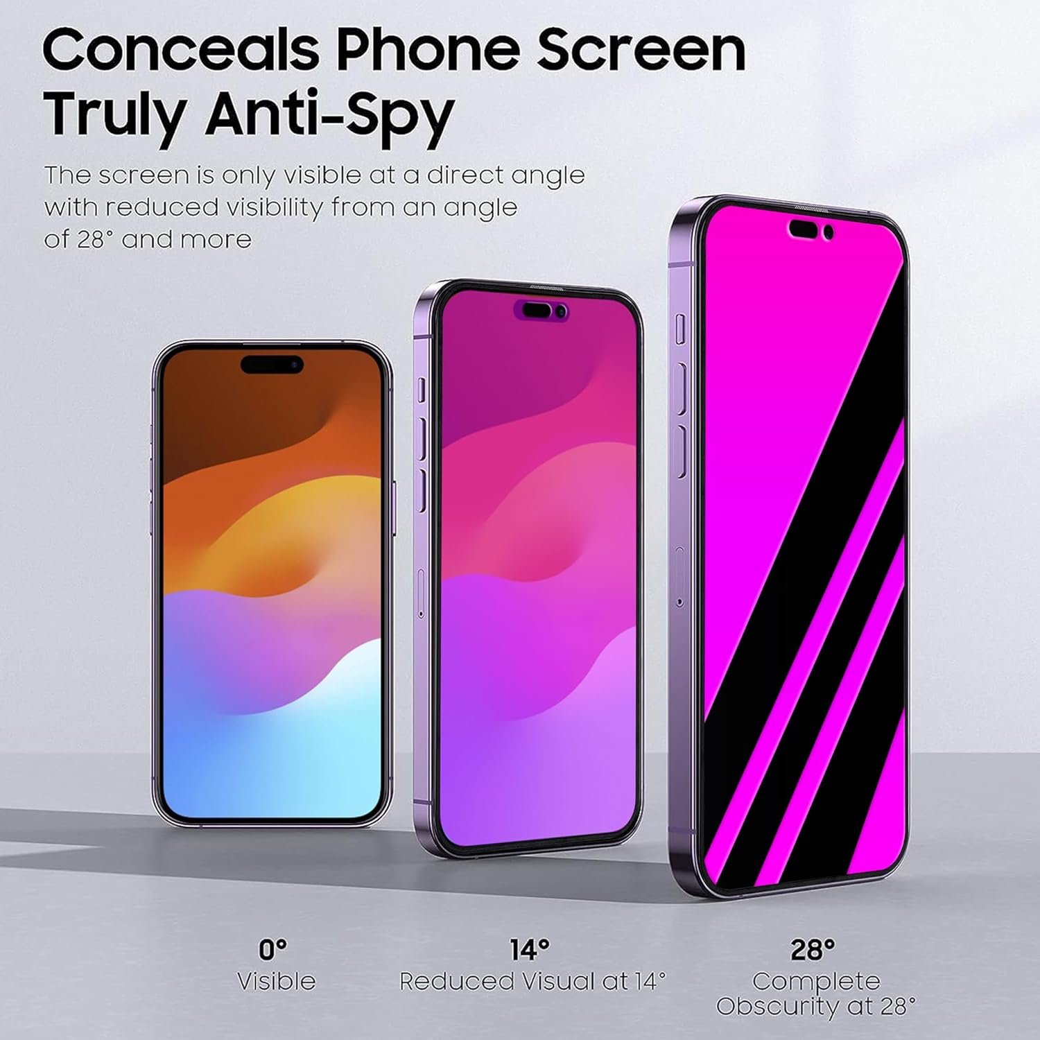 【28° Privacy Protection】Privacy screen protector Specially designed compatible with iPhone 15 Pro (6.1 inch) , the screen only visible to people within 28°, people beside only see different shades of pink screen. Protect your privacy and sensitive information when in public.