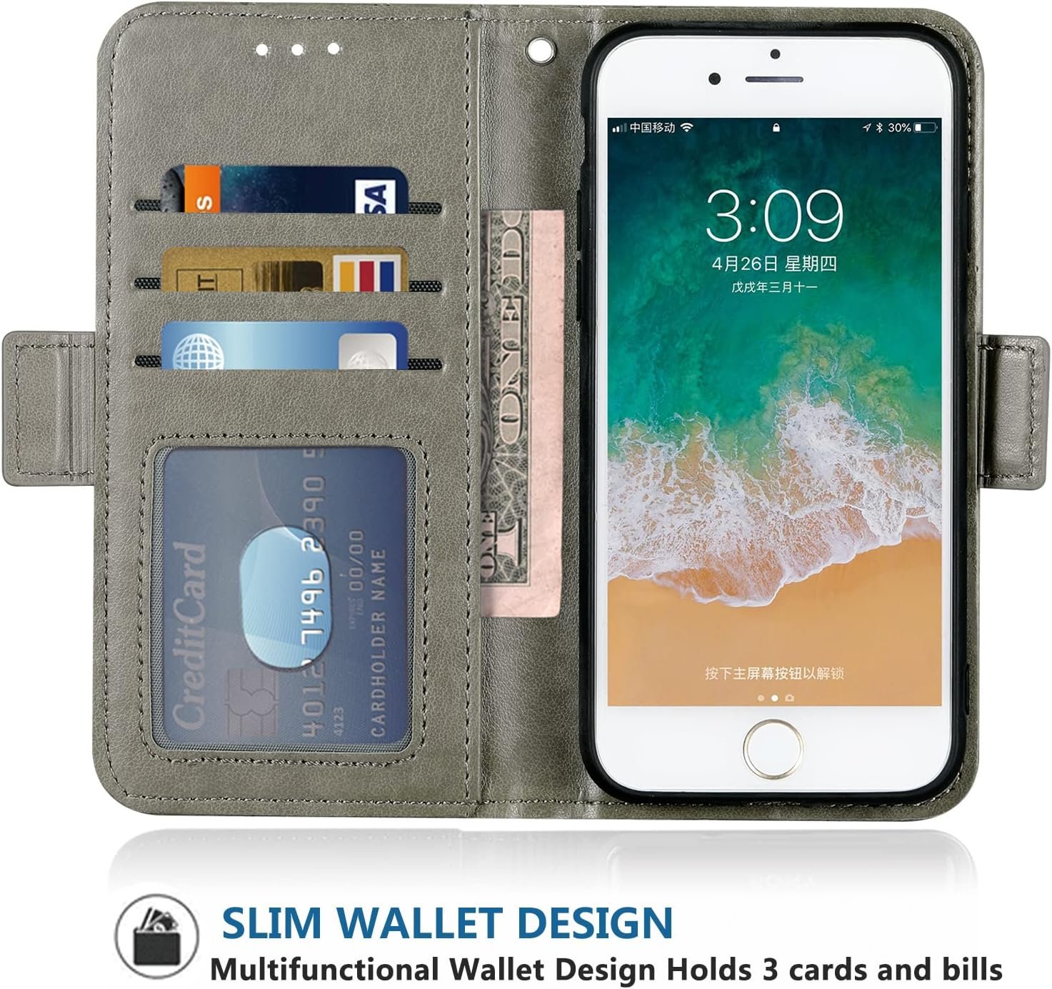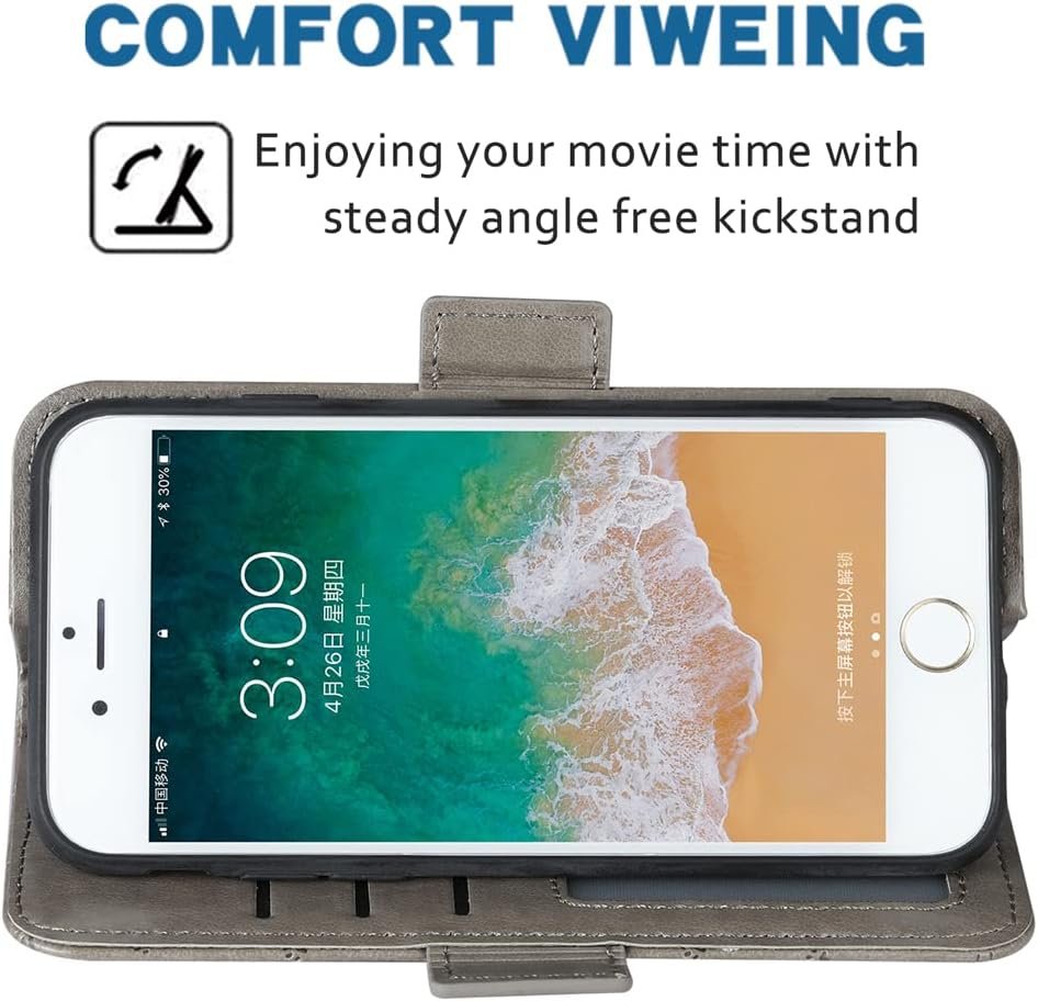 【Phone function】: For iPhone 6 plus wallet cases include 3 card slots, 1 money pocket, 1 with view window can place your favorite photo,full cable/button/speaker access, a magnetic closure and a landscape kickstand.