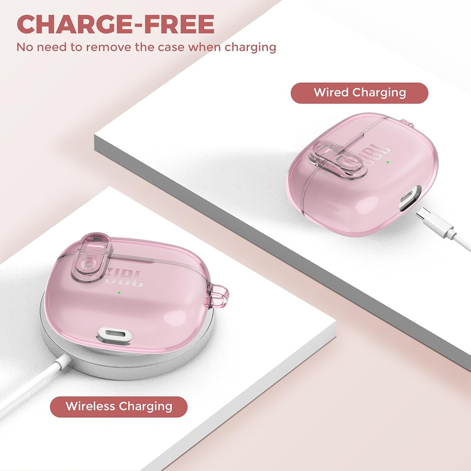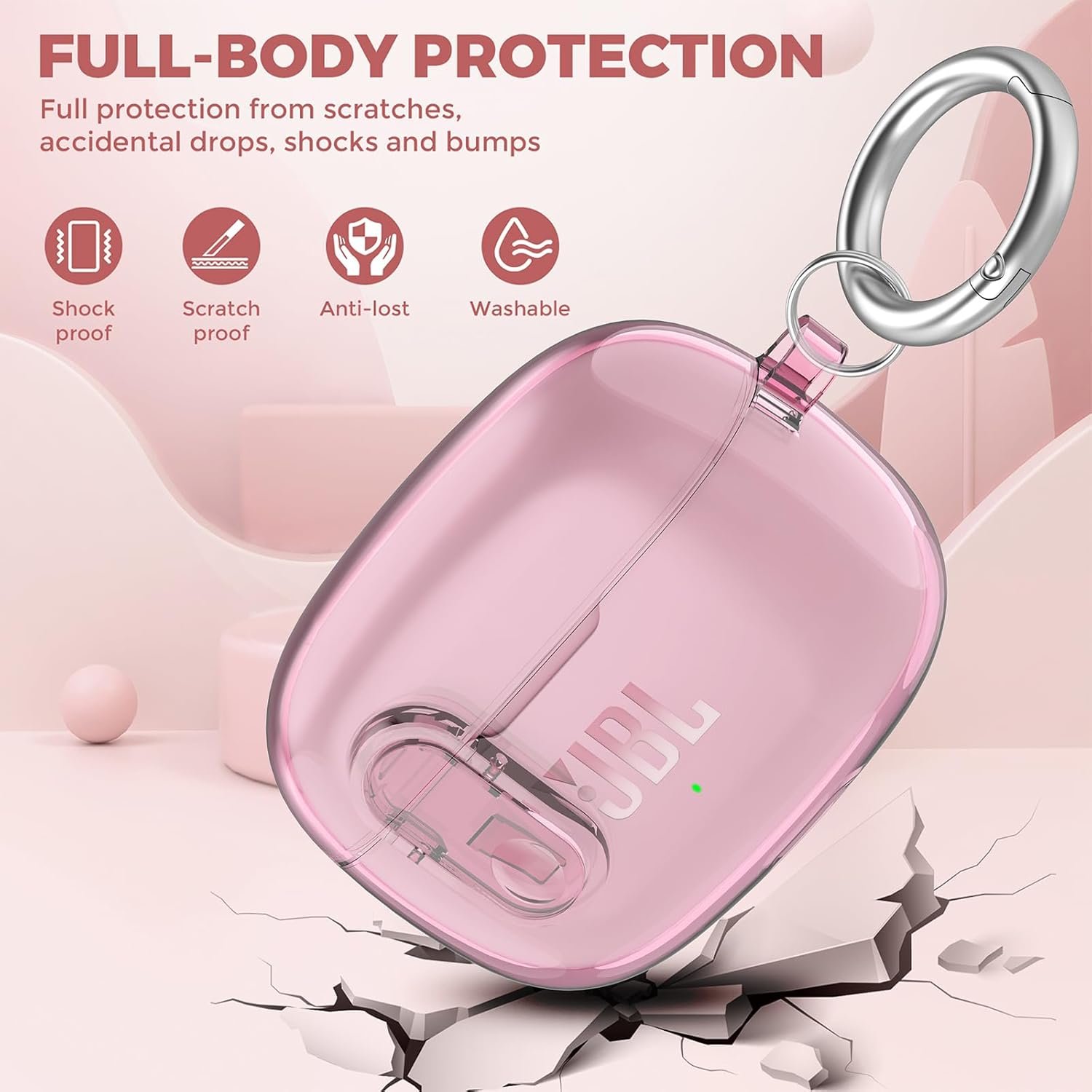❤【CRYSTAL CLEAR】: Transparent polycarbonate back allows charging light to shine through while keeping your buds safe from scratches or scuffs. Also can looking for JBL logo very nice.