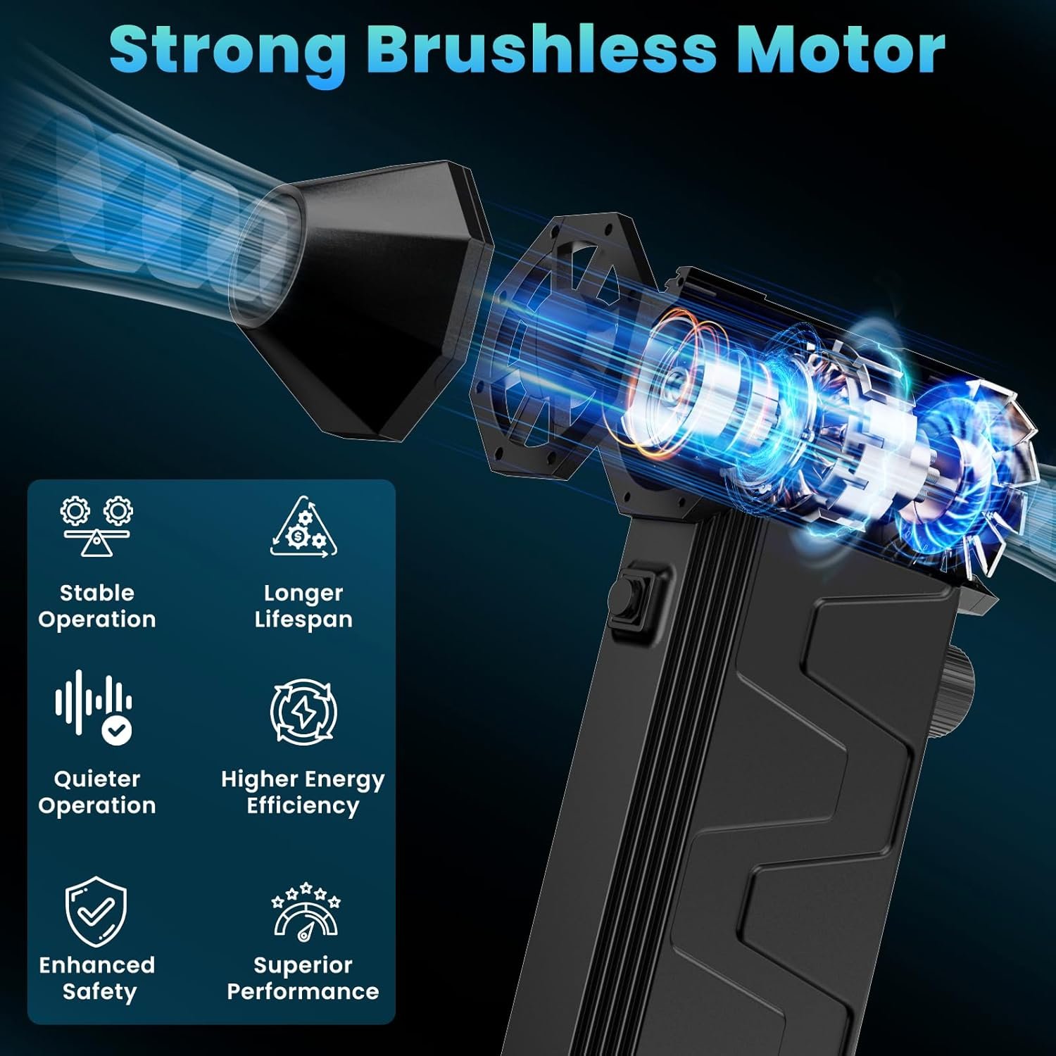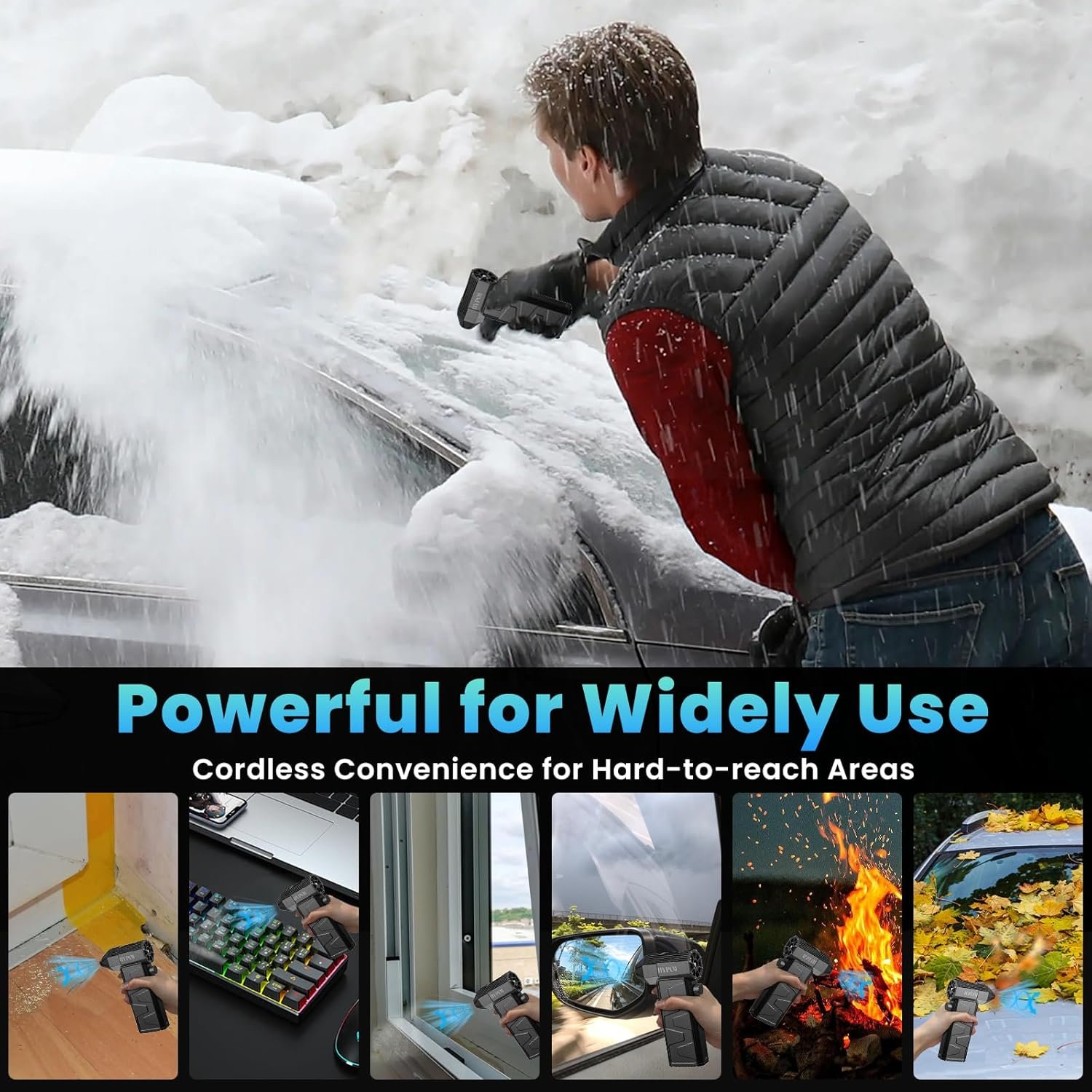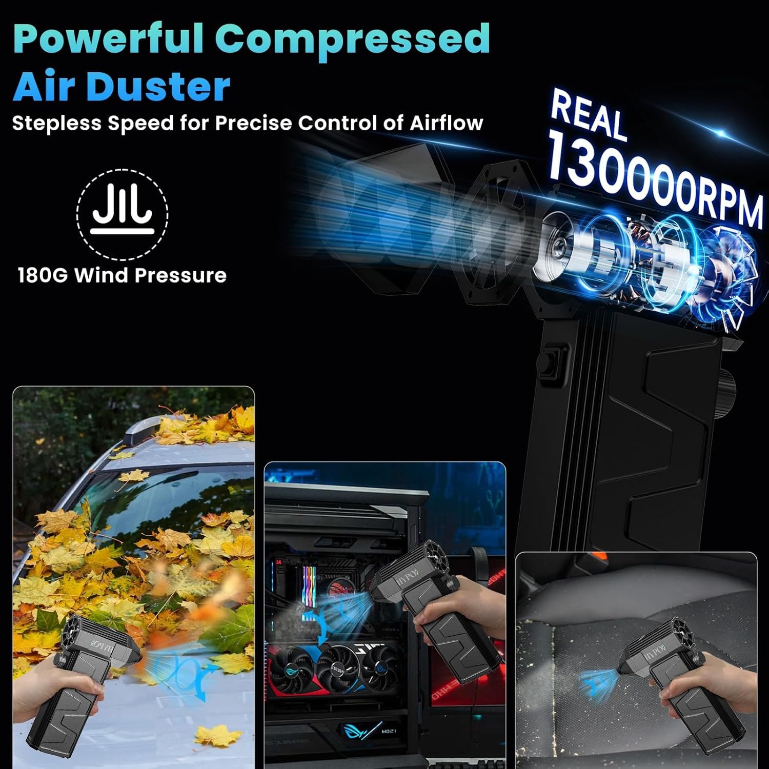 Powerful 130000RPM Turbo Fan: This electric air duster features a high-speed turbo fan reaching 130000 RPM, delivering a strong airflow to effortlessly blast away dust and debris from car interiors, keyboards, electronics, and more