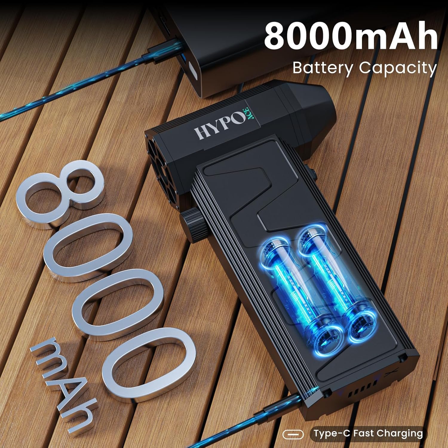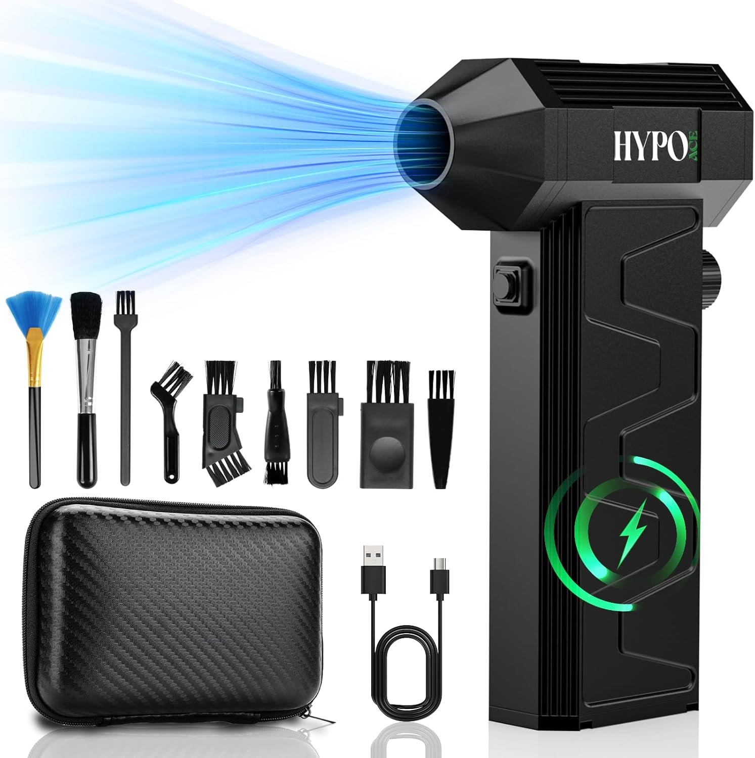 Rechargeable 8000mAh Battery: With a long-lasting, 8000mAh rechargeable battery and USB Type-C cable, this air duster provides consistent power for extended cleaning sessions, eliminating the need for compressed air cans