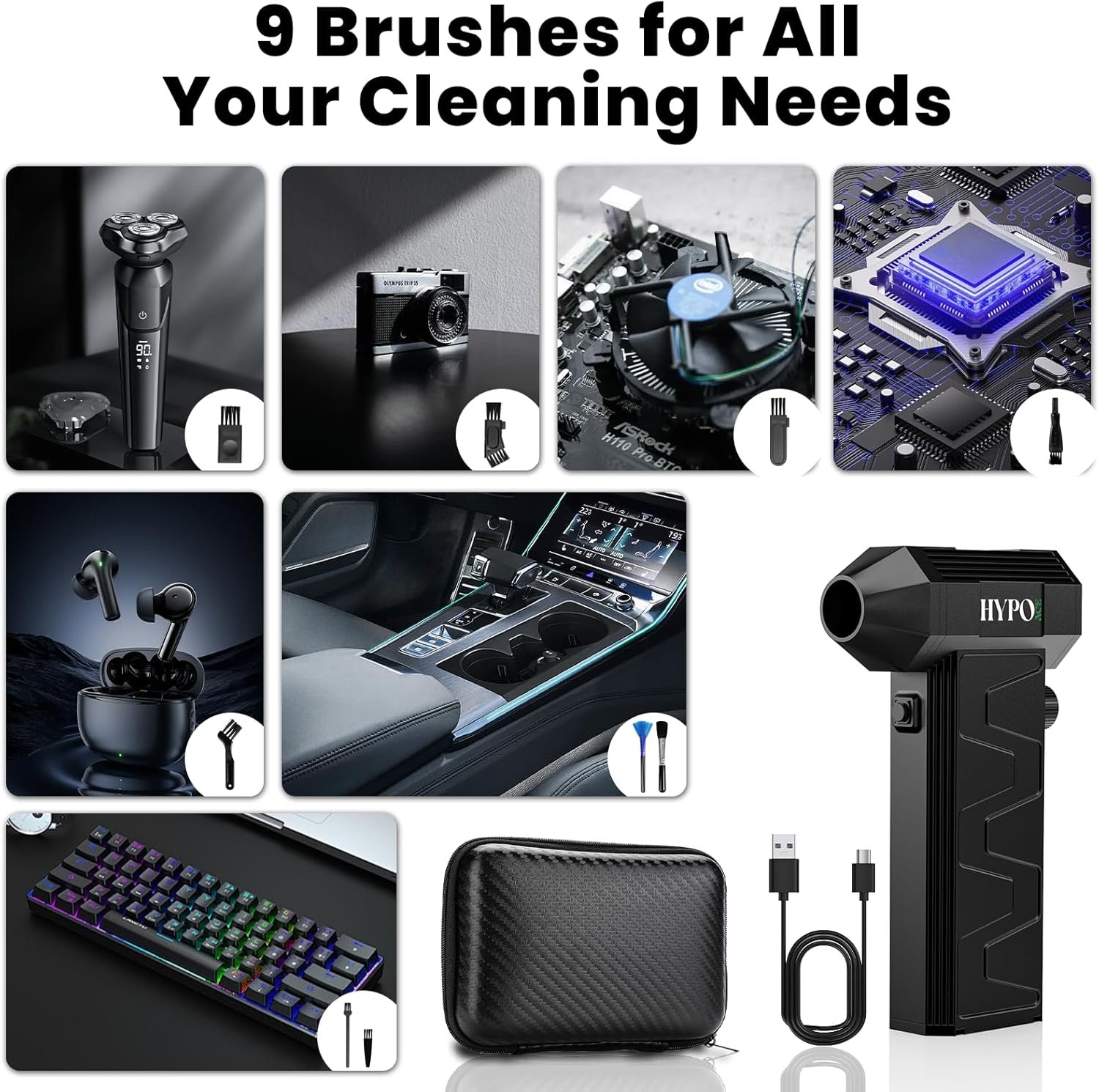 Versatile Cleaning Kit Included: Comes with 9 cleaning brushes in various sizes, a nozzle attachment, and a storage bag, making it the ideal cleaning solution for every detail, from tight keyboard spaces to car vents