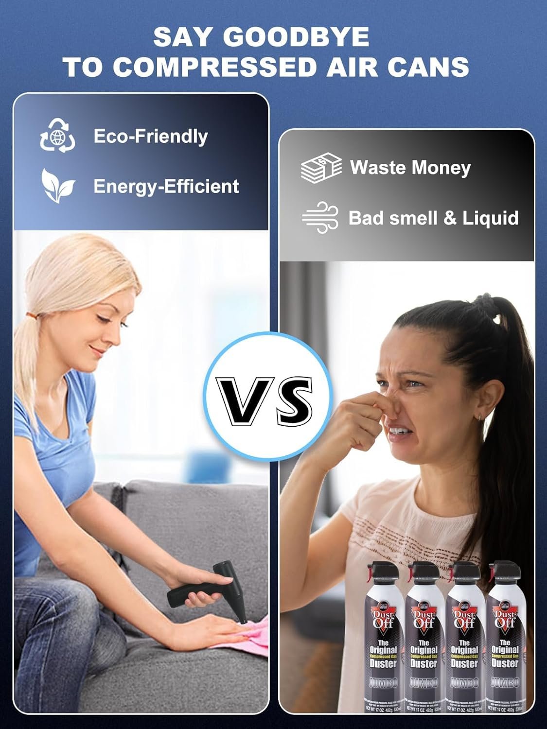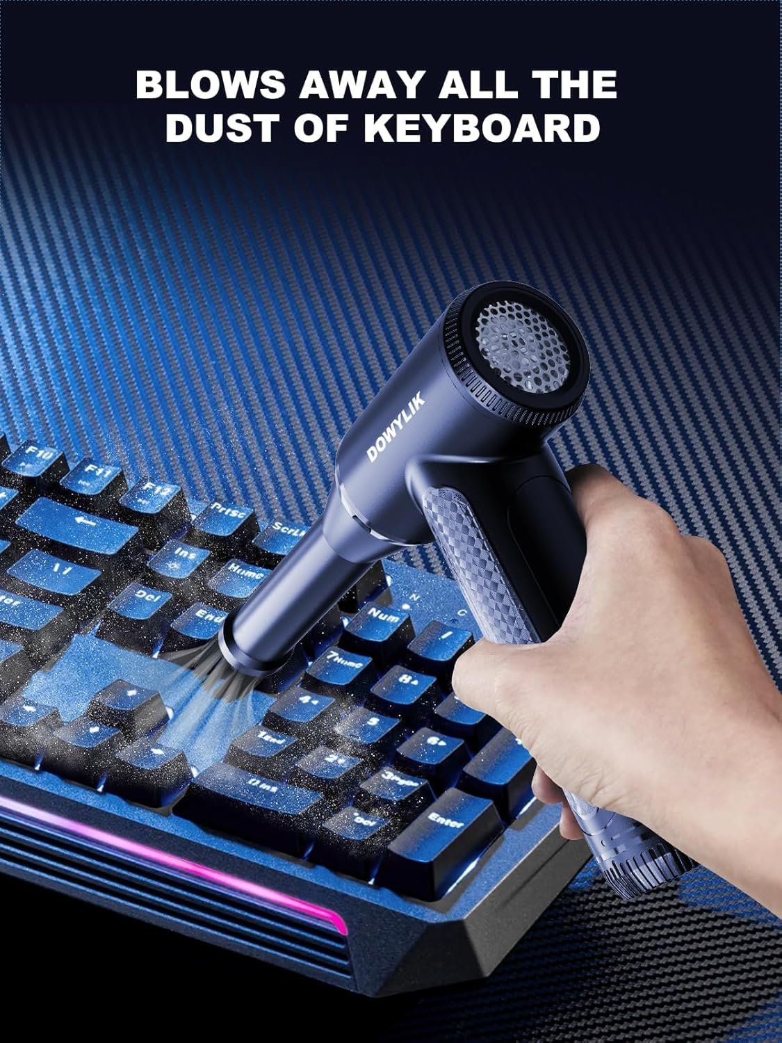 【Energy-Efficient Canned Air Replacement】: The DOWYLIK electric air duster is a perfect replacement for traditional canned air duster. It can be recharged and used repeatedly, making it eco-friendly, energy-efficient, and cost-effective. Instead of constantly purchasing canned air dusters, you only need to invest once in this rechargeable air duster