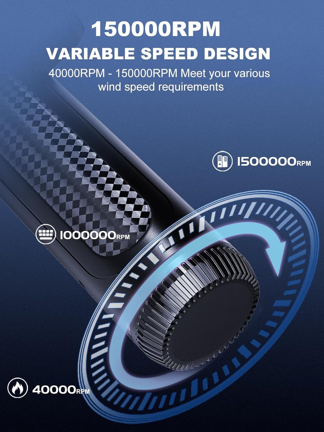 【Compressed Air & Mens gifts 】: Customize the wind speed to meet your specific needs with stepless speed switch. Adjustable rotating stepless wind speeds from 40000RPM to 150000RPM, allowing you to choose the appropriate speed for different items to be cleaned. It measures only 5.4*2.8*1.4 inch and weighs only 0.7 lb. Take it anywhere you go with ease. Package in a nice box is suitable gifts for men