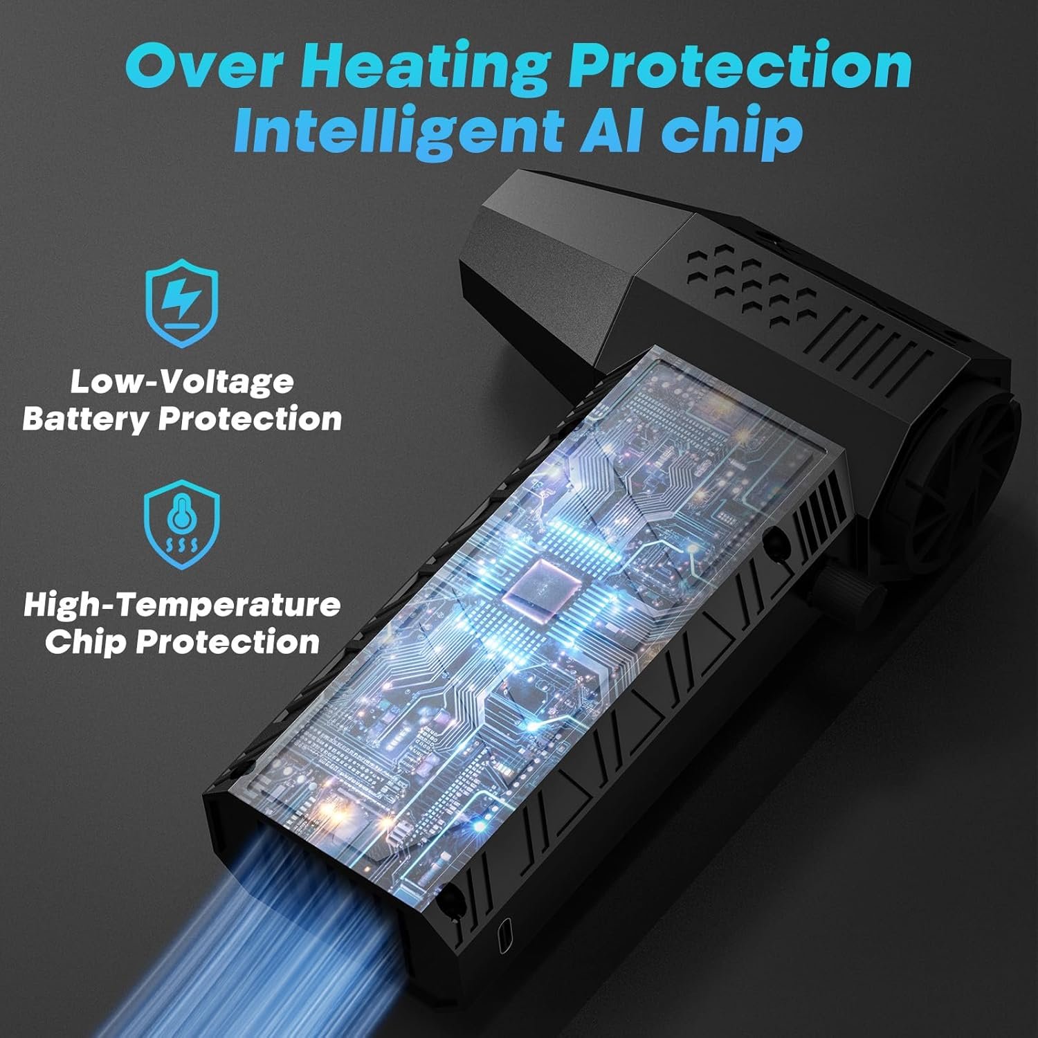 【Widely Used】This electric air duster is versatile and perfect for a variety of tasks. It can clean computers, keyboards, laptops, car seats, and home areas such as sofas and small corners. It can also quickly dry pet hair, clean car interiors, remove snow and water from cars, and help remove leaves and debris from the yard. Great for camping, it can inflate air mattresses, help start fires, and enhance barbecue flames. This is a versatile tool that meets all your cleaning and outdoor needs