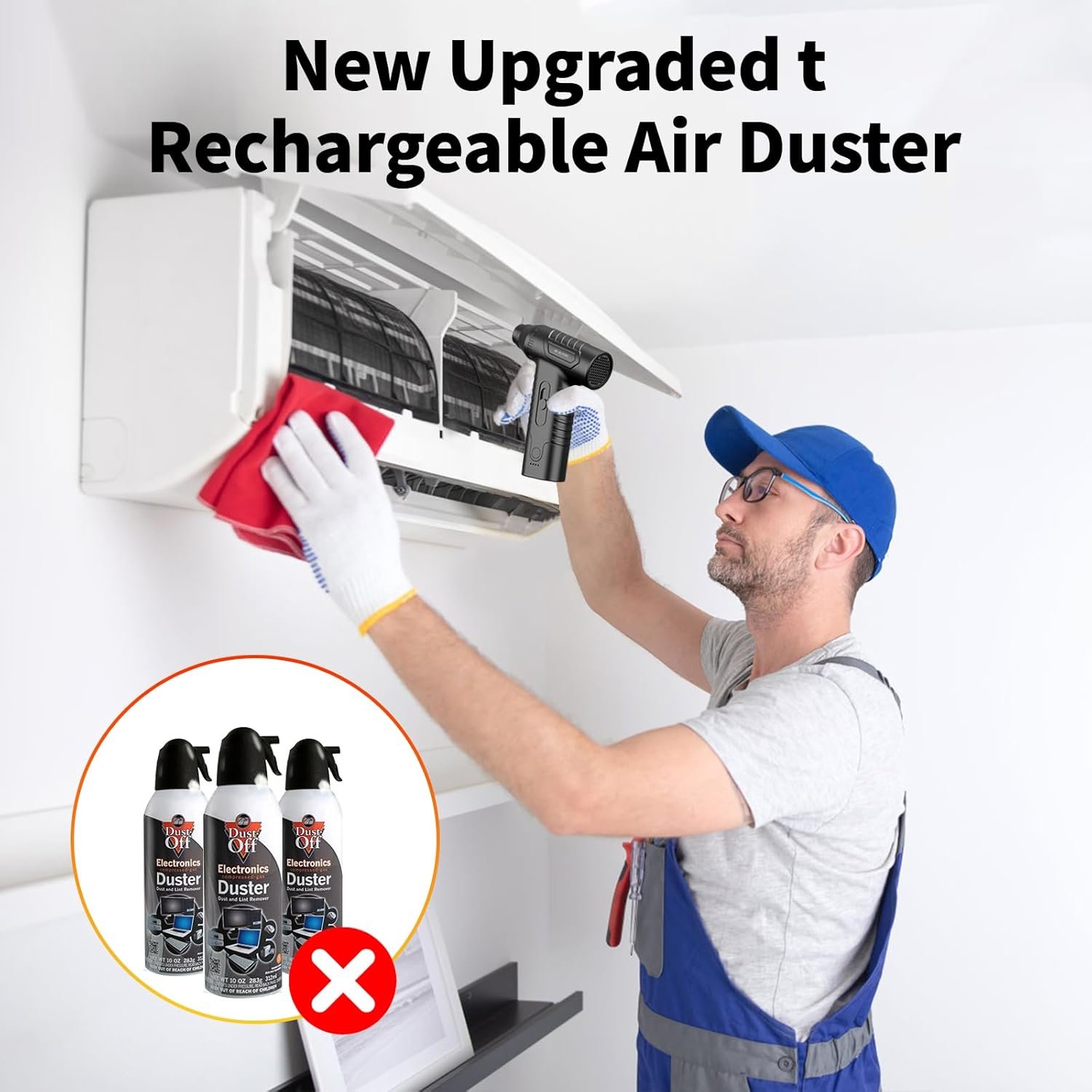 【Alternative to Compressed Air】Compared to compressed air can, this cordless air duster can be recharged and used over and over again, with no liquid or ice formation occurring in the cleaning.It protects your electronics, so this air duster is energy efficient